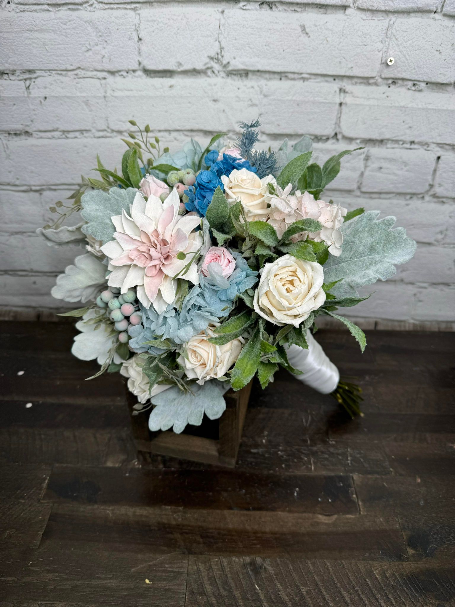 Care & Storage:: Once you receive your flowers, we recommend you take them out of the boxes & paper, setting them upright in a dry-climate controlled environment where the temperature is steady & does not vary. Humidity levels should not be higher than 50%. Do not keep your flowers in any basements, attics, garages or bathrooms where moisture may fluctuate. Once the flowers leave us & arrive to you, their care is no longer the responsibility of The Wilusz Way. If your collection has natural dried flowers, please keep in mind they are fragile and should be handled gently and stored with care.