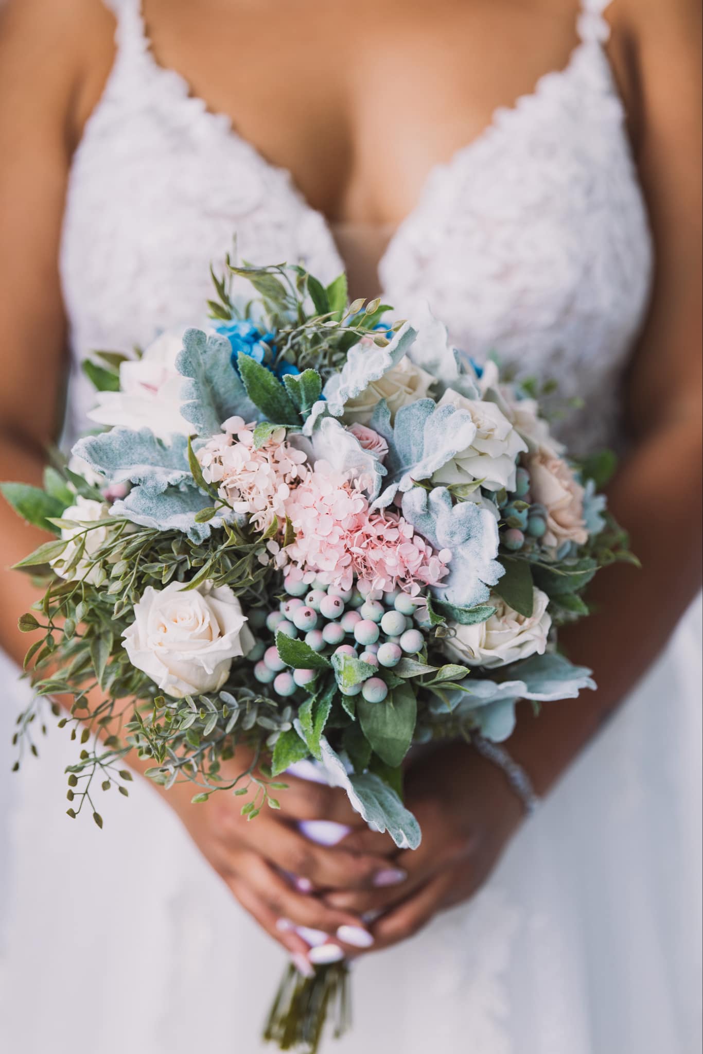 Color Palette:: Shades of Blue, Shades of Pink, Pastel Peach, White, Ivory