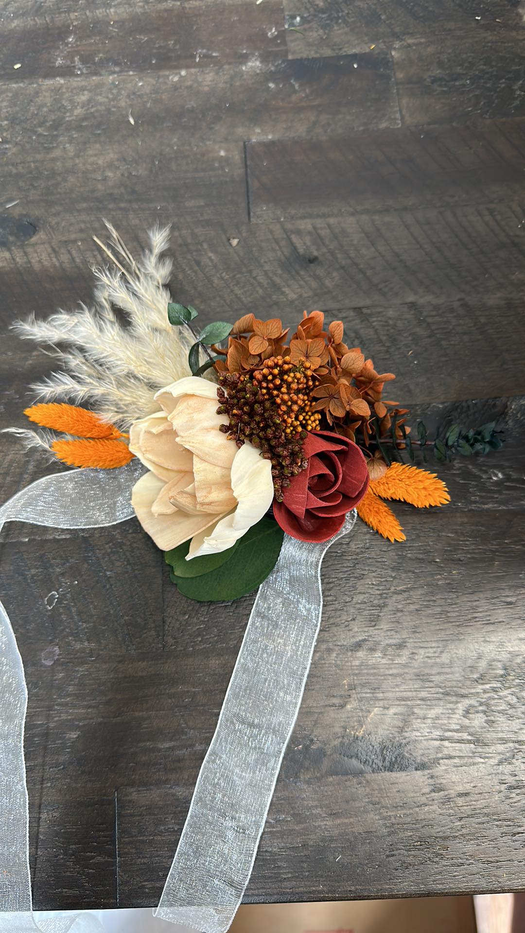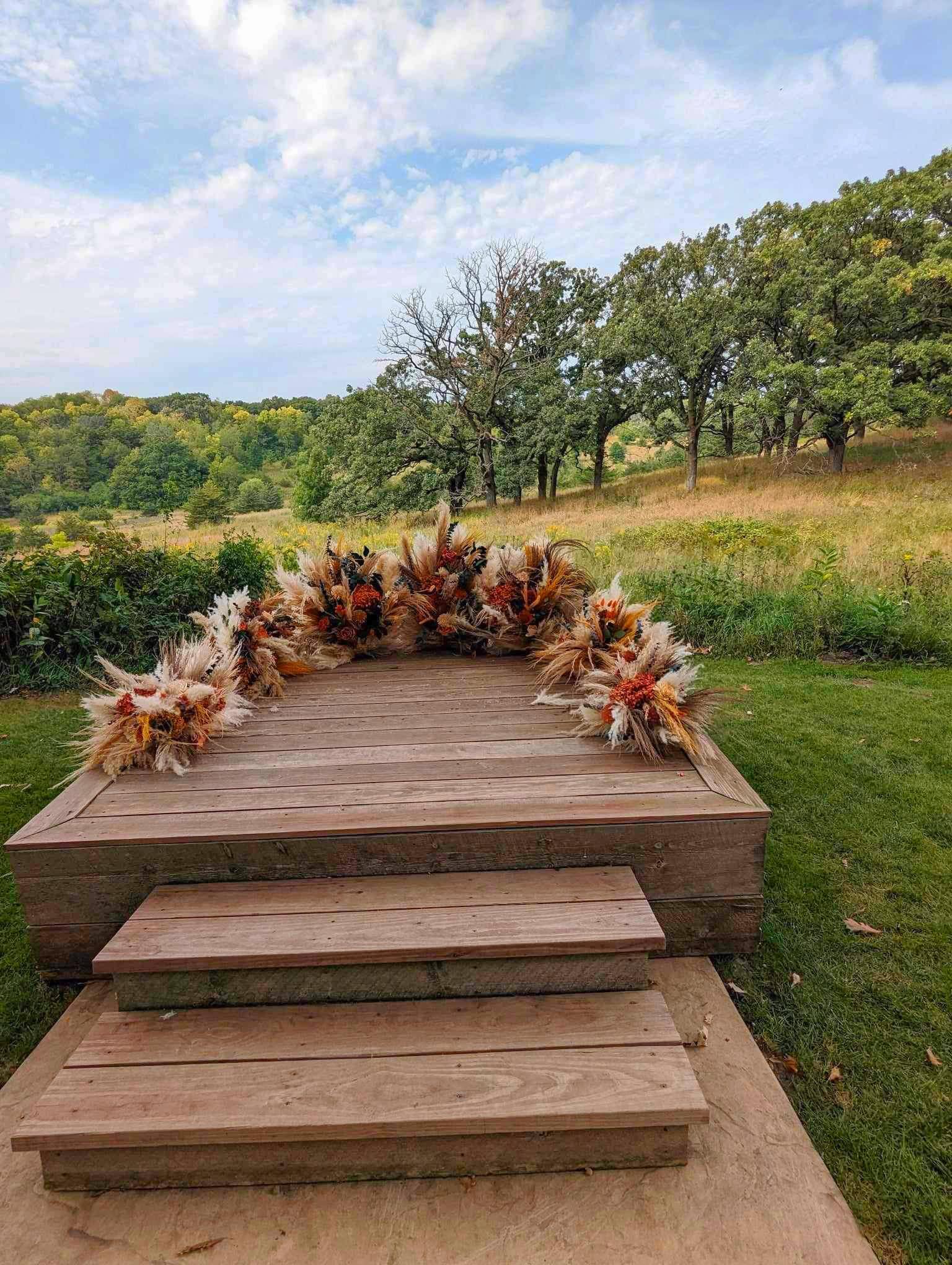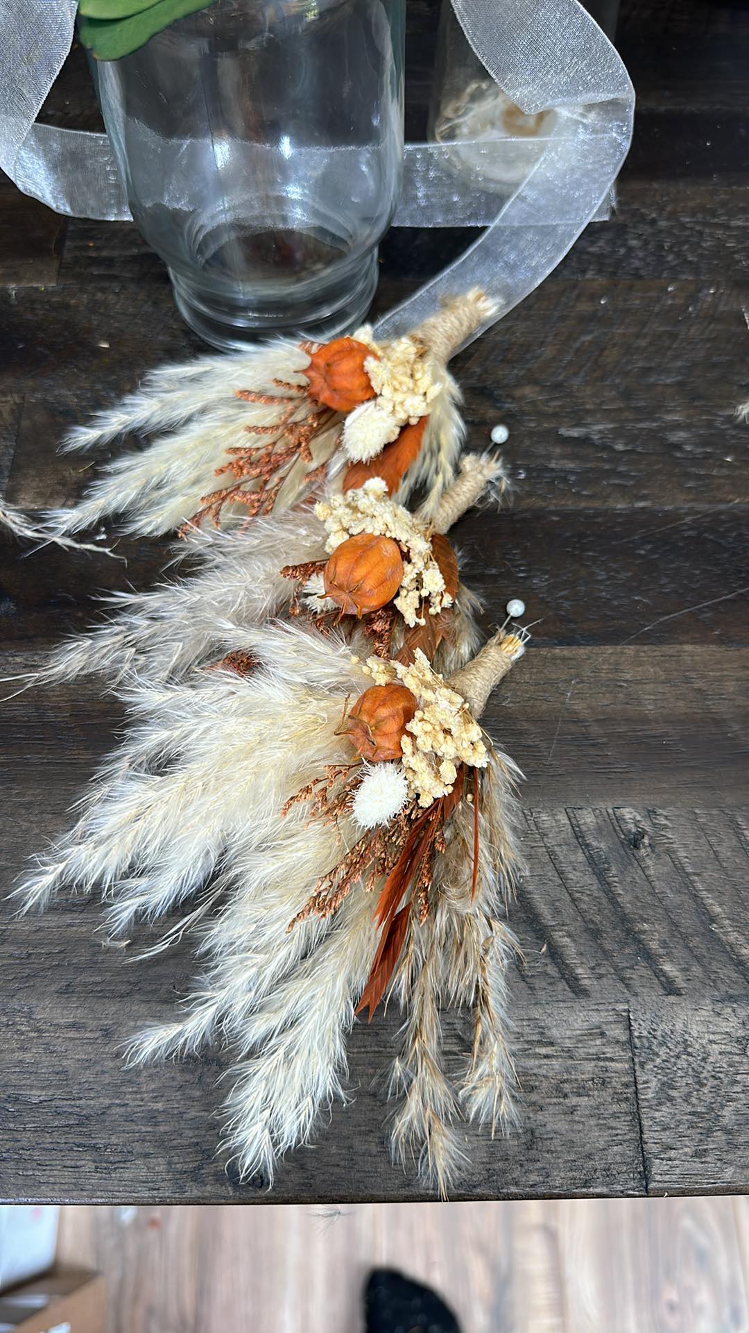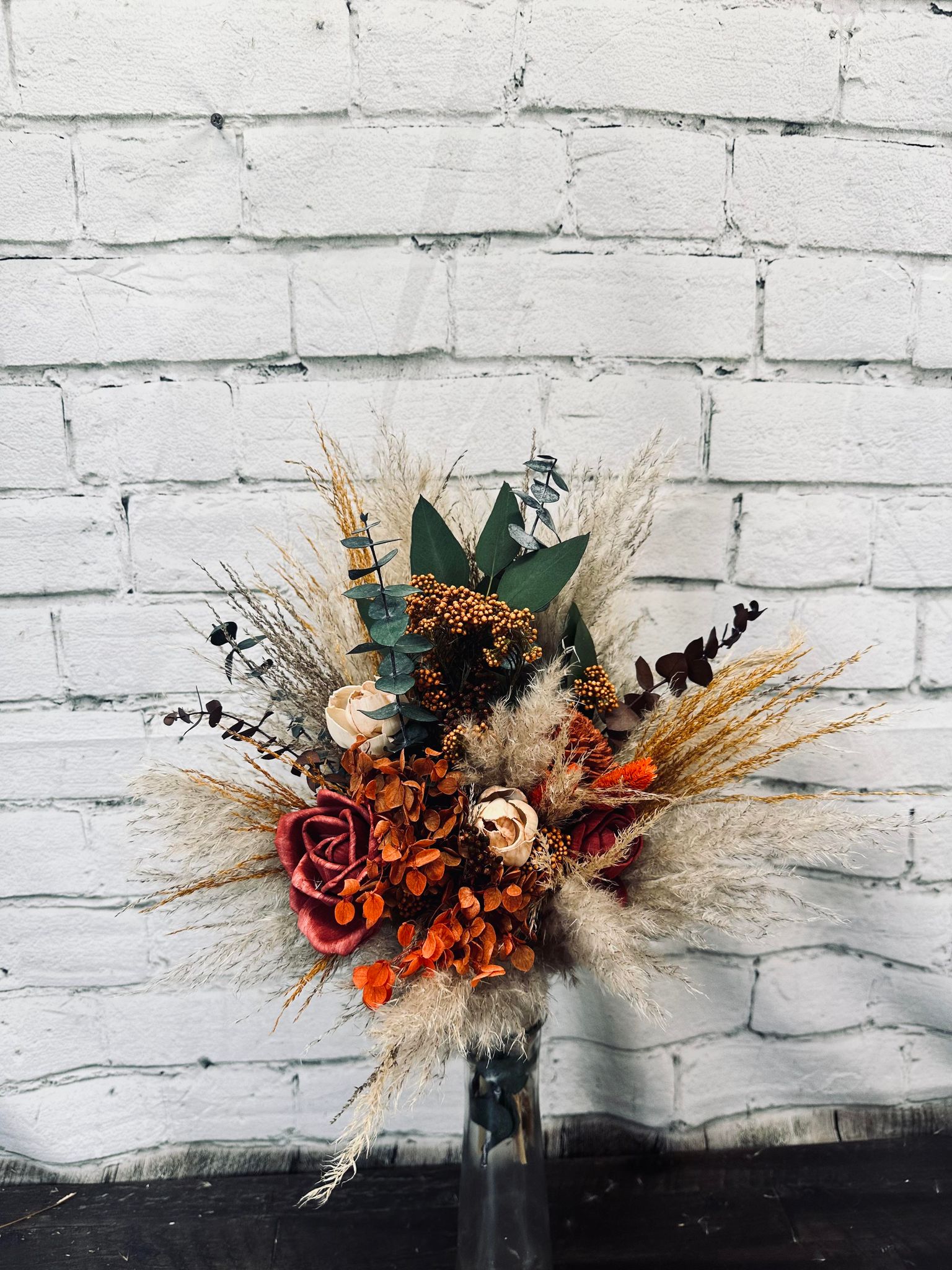 Arcadia Collection:: Stepping into your wedding venue, will be like walking into a new world! This array of hand dyed wood flowers are surrounded by all real preserved pampas, hydrangeas, spiral & silver dollar eucalyptus, and natural dried fillers. Let our Arcadia Collection make your special day, a magical one!