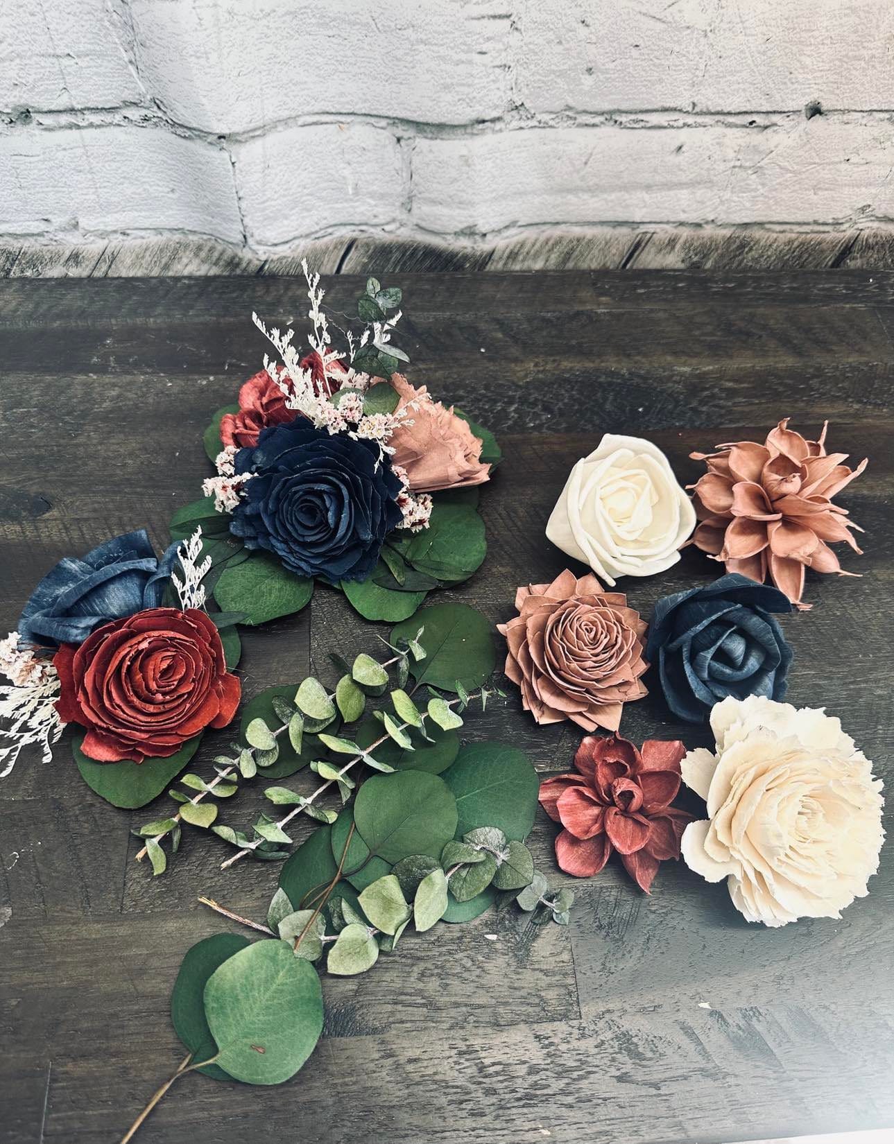 Flower Origin:: We use handmade wooden flowers from Thailand! These flowers are not fresh flowers. The texture is similar to a really thin version of balsa wood. Because they are handmade, and made from natural materials, no two are exactly alike. Brown veining, sometimes small holes from a “knot” in the wood are on some of the flowers due to being made from the bark of a tree. A variety of lines may show from the bark on skinless flowers. These are perfectly imperfect.