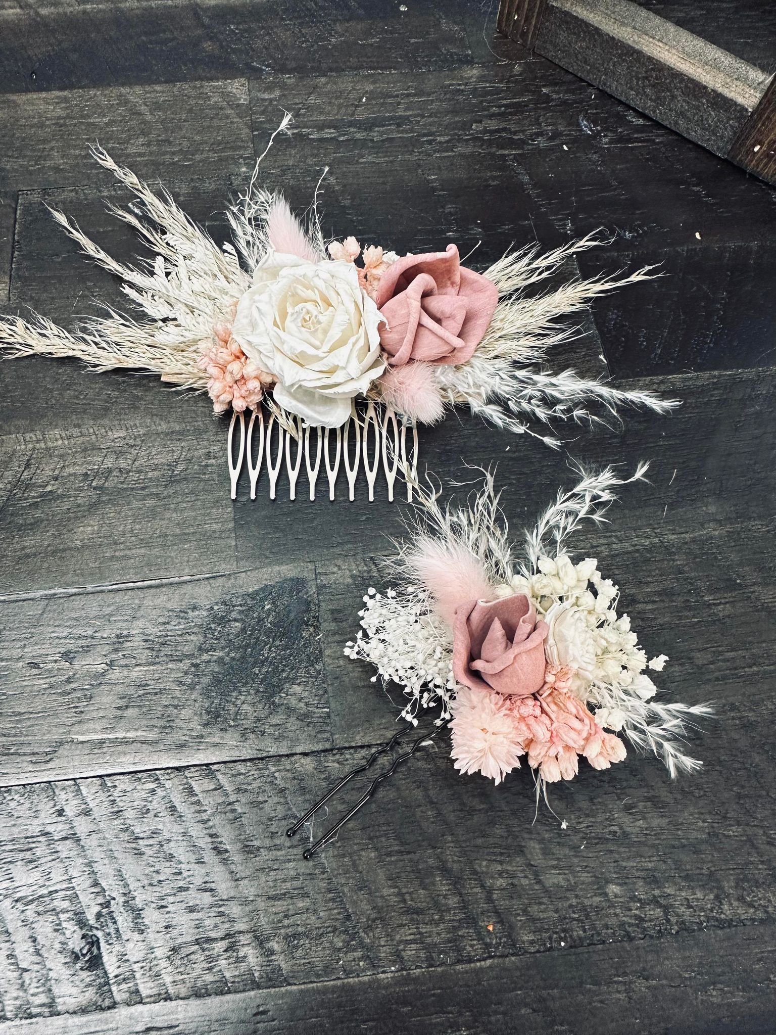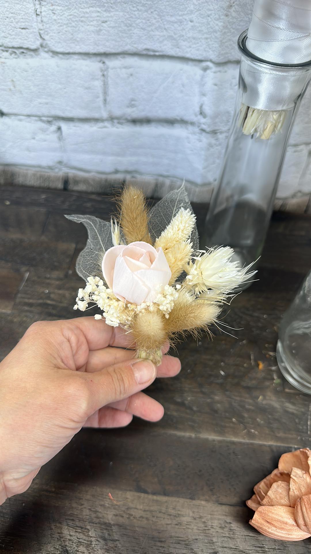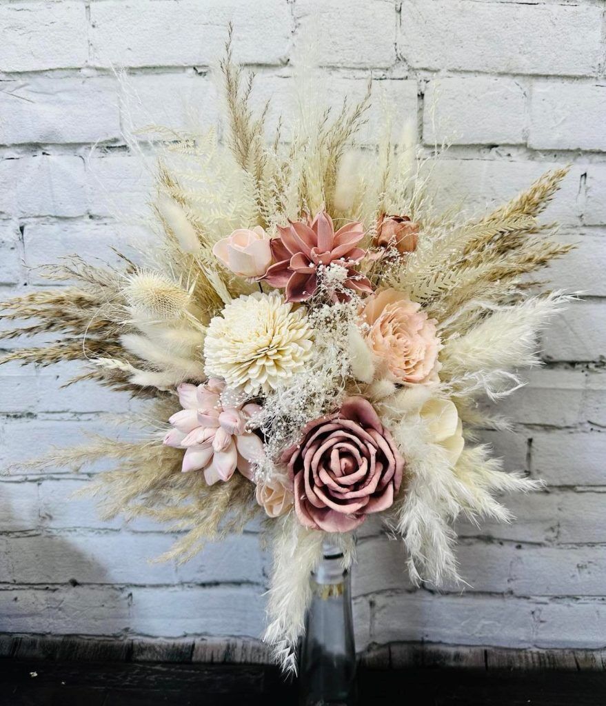 Blush Petals Collection:: Romantic boho is so in! With a soft color palette of wood flowers, surrounded by real preserved pampas, whisk, white ferns, and other natural dried fillers. Our Blush Petals Collection is the perfect set for your day of love!