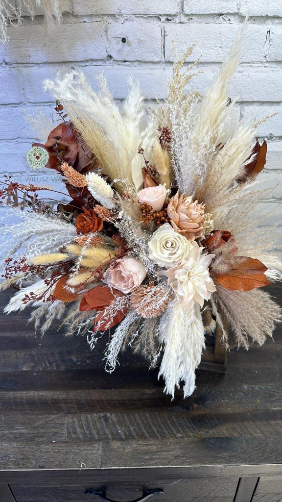 Care & Storage:: Once you receive your flowers, we recommend you take them out of the boxes & paper, setting them upright in a dry-climate controlled environment where the temperature is steady & does not vary. Humidity levels should not be higher than 50%. Do not keep your flowers in any basements, attics, garages or bathrooms where moisture may fluctuate. Once the flowers leave us & arrive to you, their care is no longer the responsibility of The Wilusz Way. If your collection has natural dried flowers, please keep in mind they are fragile and should be handled gently and stored with care.