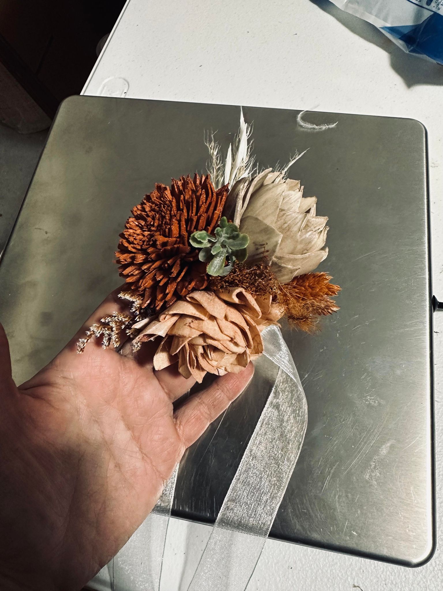 Flower Origin:: We use handmade wooden flowers from Thailand! These flowers are not fresh flowers. The texture is similar to a really thin version of balsa wood. Because they are handmade, and made from natural materials, no two are exactly alike. Brown veining, sometimes small holes from a “knot” in the wood are on some of the flowers due to being made from the bark of a tree. A variety of lines may show from the bark on skinless flowers. These are perfectly imperfect.