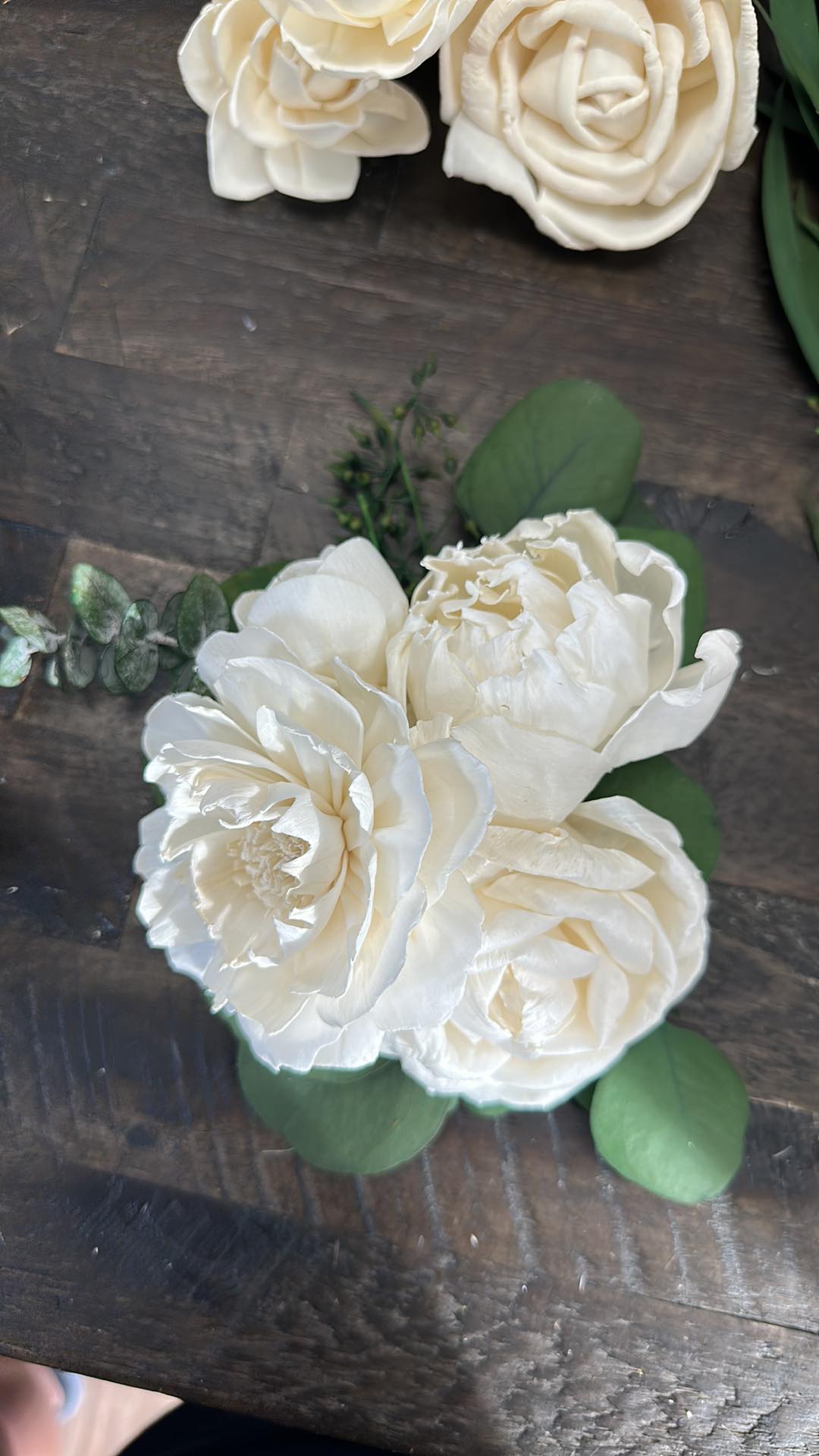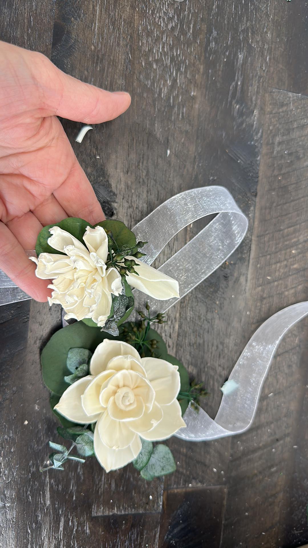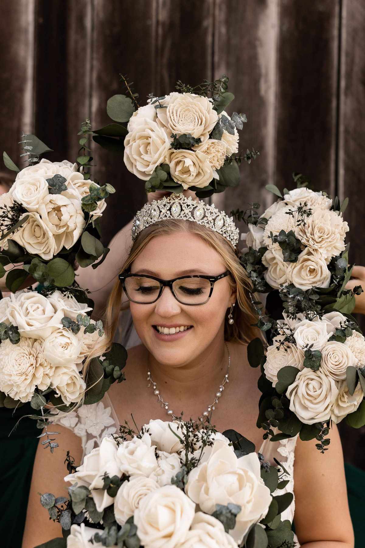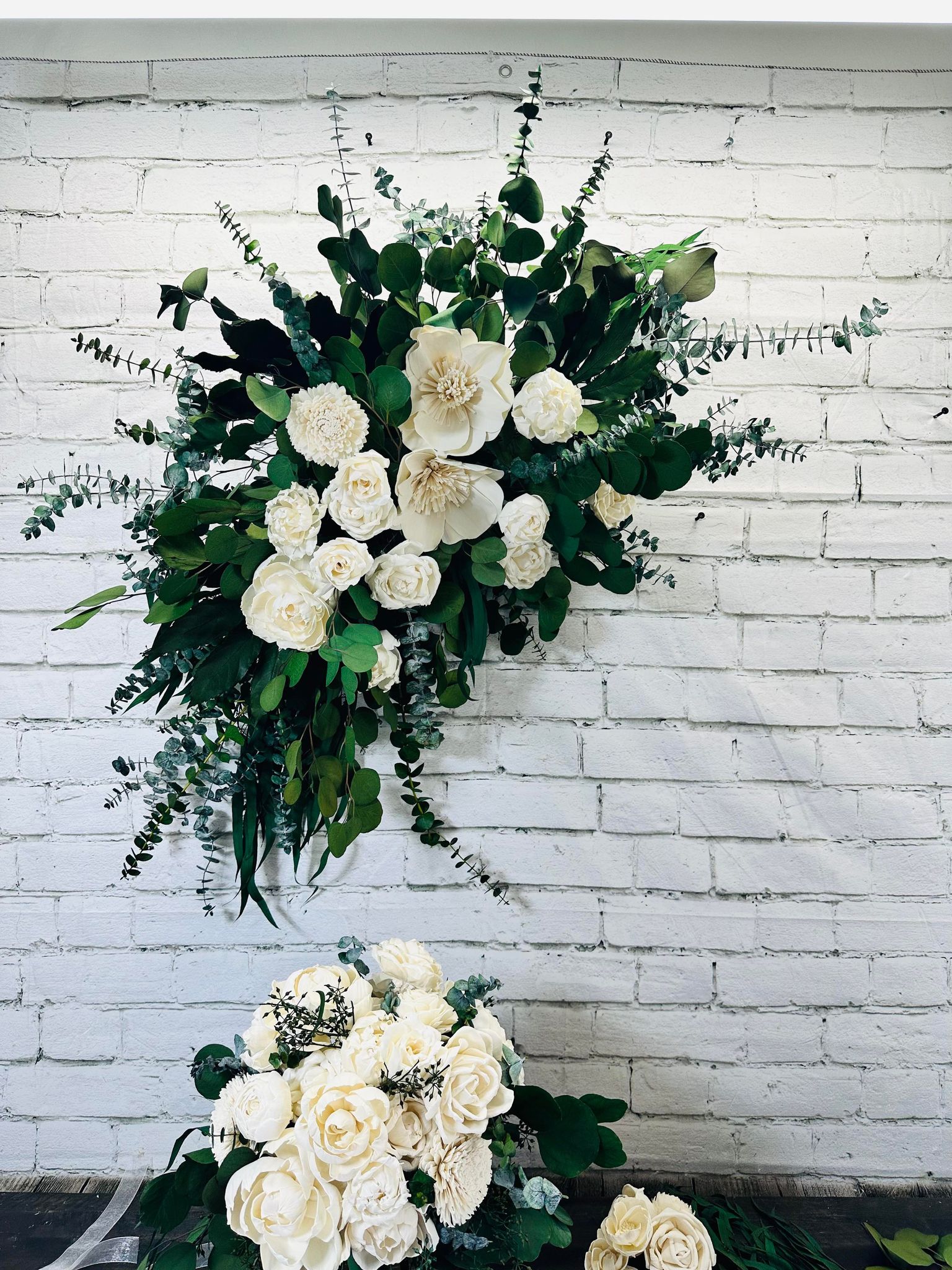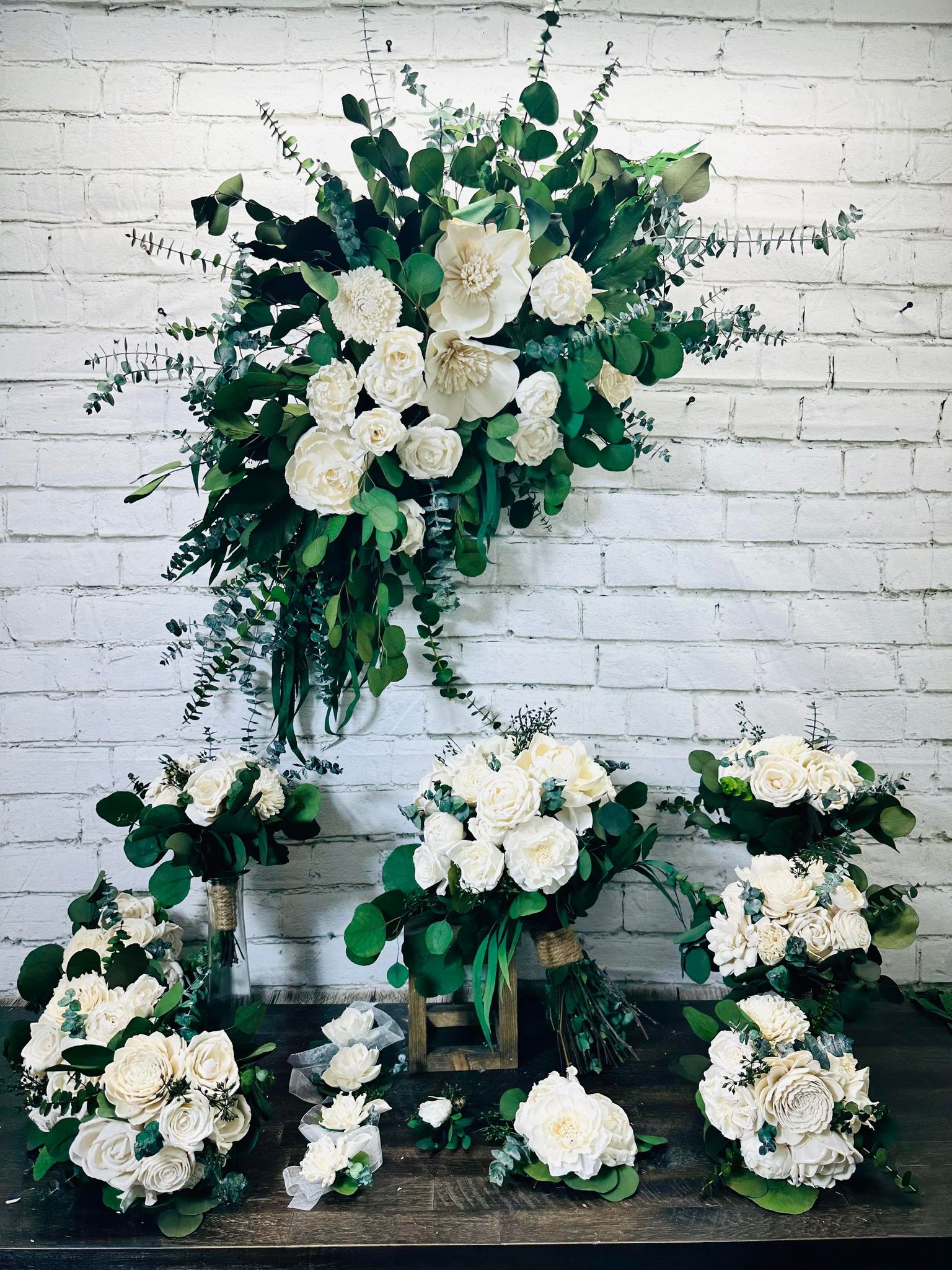 We strive to create every collection as close to the original as possible. These items are hand-crafted. Slight differences from the main photos will occur, as you are not purchasing the photographed items. Your collection is being made to order.. Flower design and fillers may vary due to availability of products.