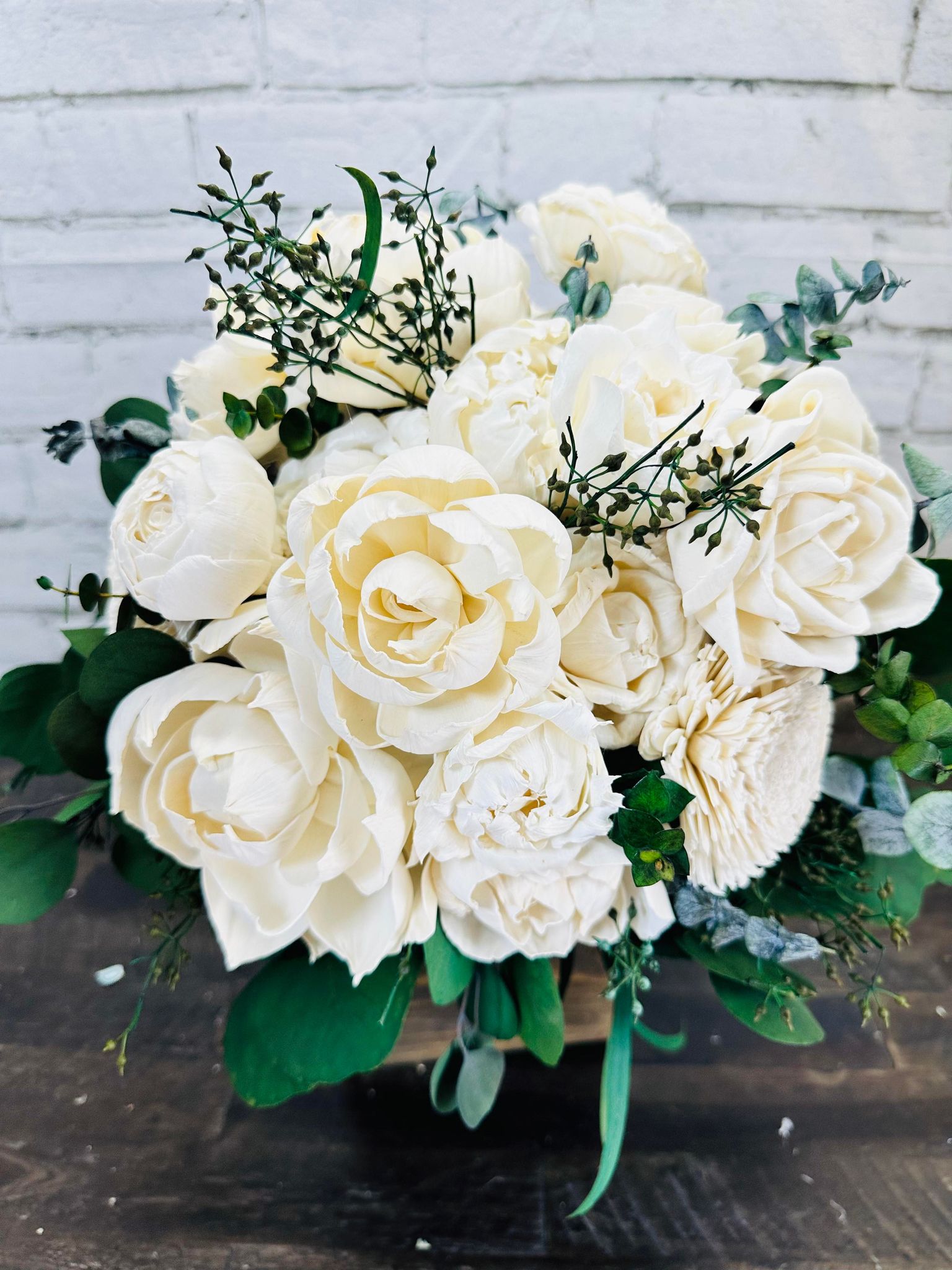 Care & Storage:: Once you receive your flowers, we recommend you take them out of the boxes & paper, setting them upright in a dry-climate controlled environment where the temperature is steady & does not vary. Humidity levels should not be higher than 50%. Do not keep your flowers in any basements, attics, garages or bathrooms where moisture may fluctuate. Once the flowers leave us & arrive to you, their care is no longer the responsibility of The Wilusz Way. If your collection has natural dried flowers, please keep in mind they are fragile and should be handled gently and stored with care.