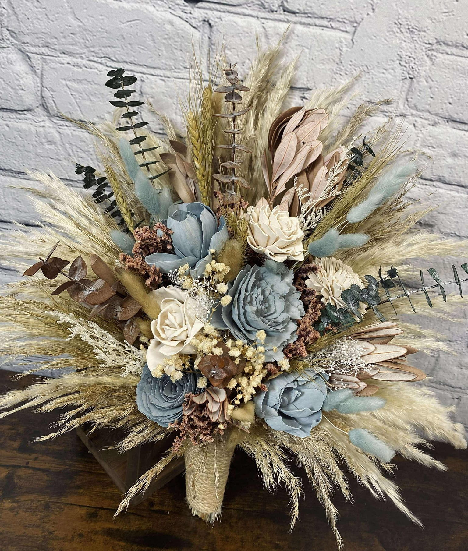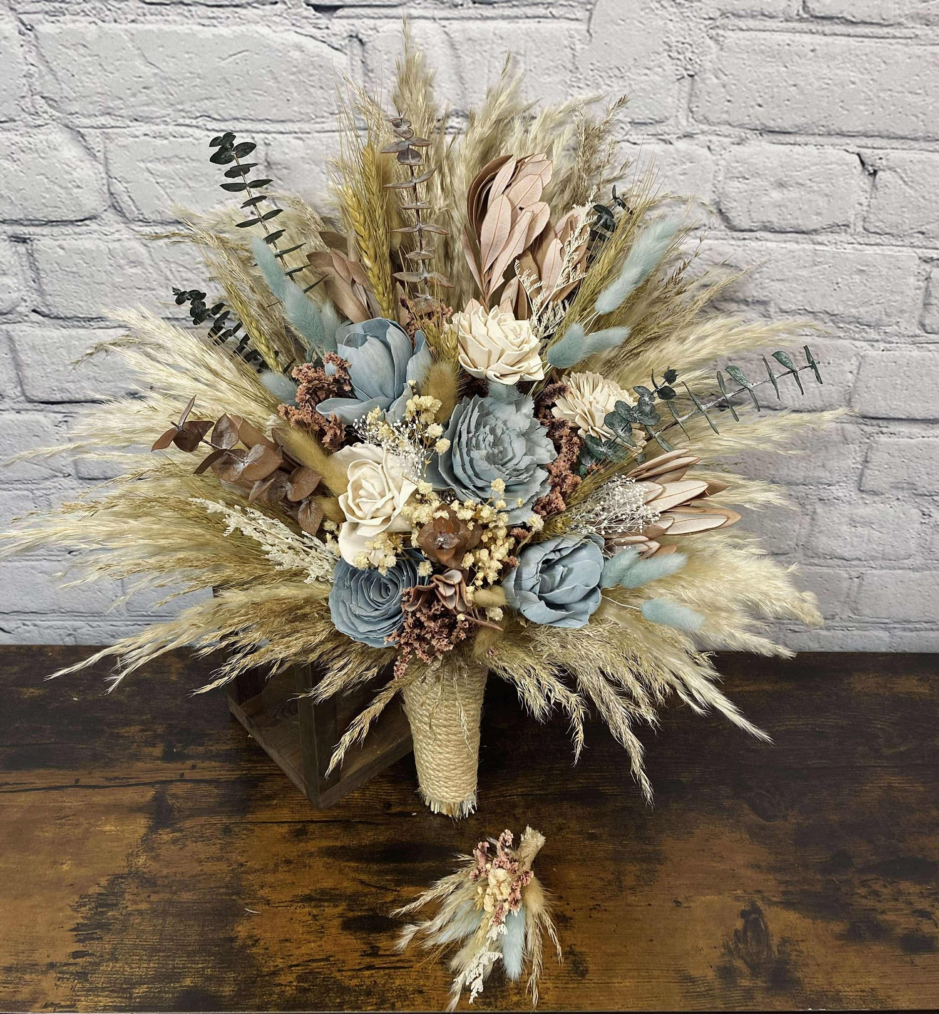 Cupcake Collection:: A sweet take on romance is just what the doctor ordered! This variety of hand dyed wood flowers are paired with real preserved pampas, spiral eucalyptus, babies breath, bunny tails and other natural dried fillers. If you are looking for a fun, flirty look with a soft elegant vibe, then our Cupcake Collection is just right!
