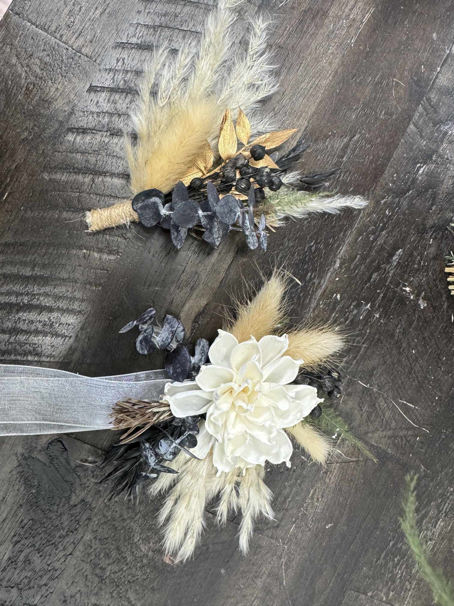 We strive to create every collection as close to the original as possible. These items are hand-crafted. Slight differences from the main photos will occur, as you are not purchasing the photographed items. Your collection is being made to order.. Flower design and fillers may vary due to availability of products.