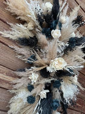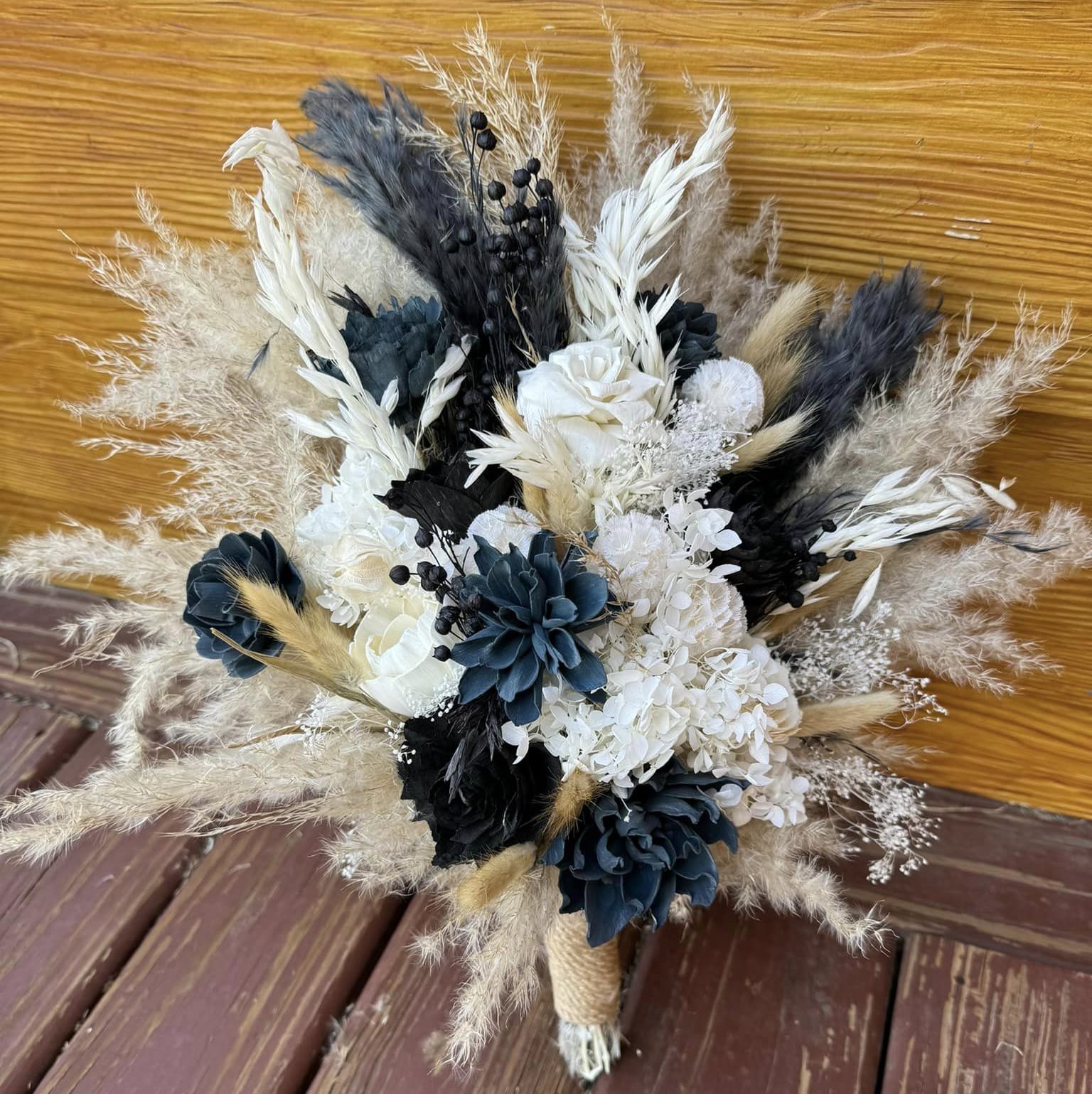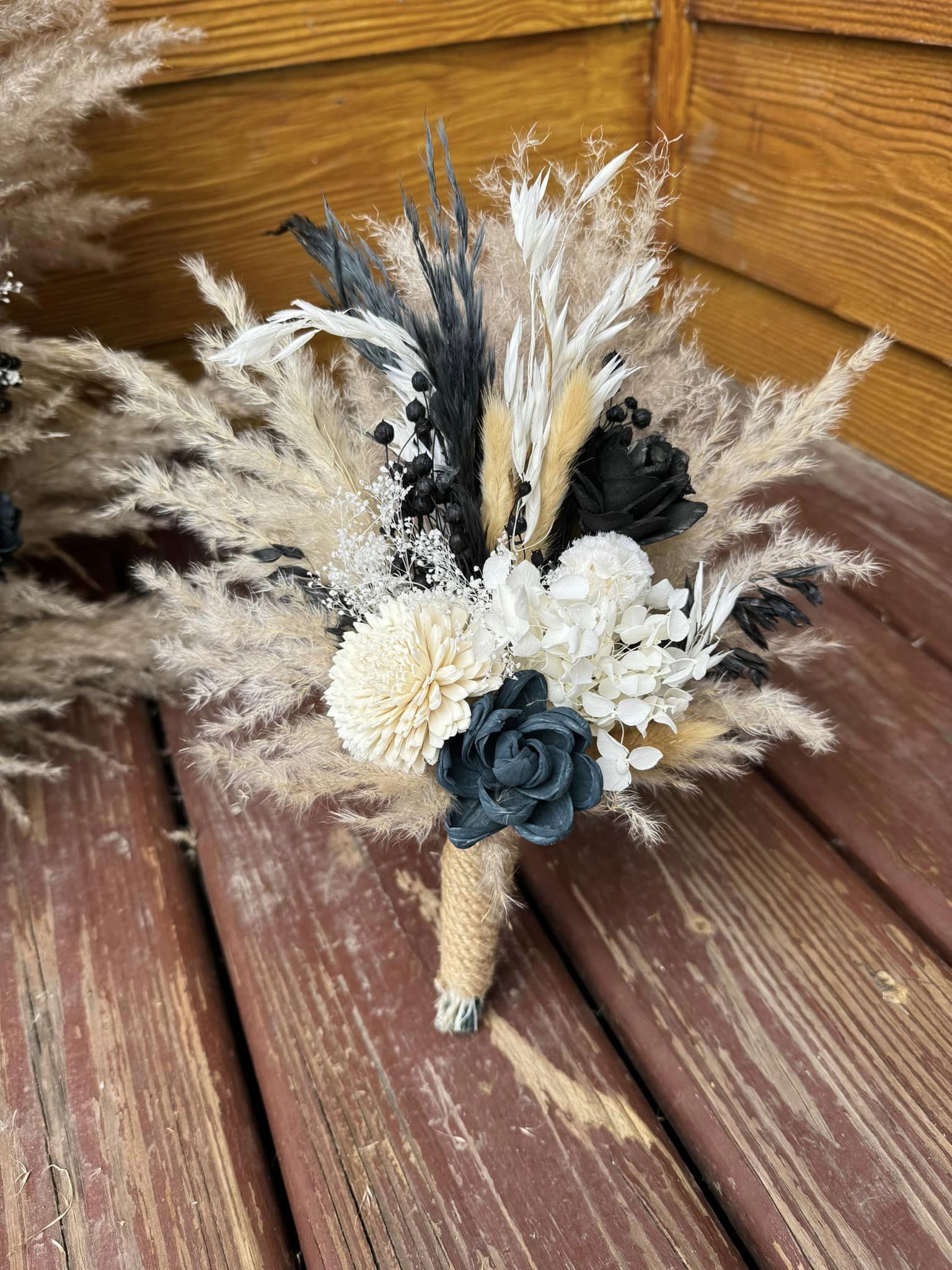 Denim Collection:: A perfect fit, just like your favorite pair of jeans! This variety of hand dyed wood flowers are paired with all real preserved pampas, hydrangeas, ruscus, babies breath, bunny tails, and natural dried fillers. Take our "Denim" Collection with you to start the next chapter of your life!