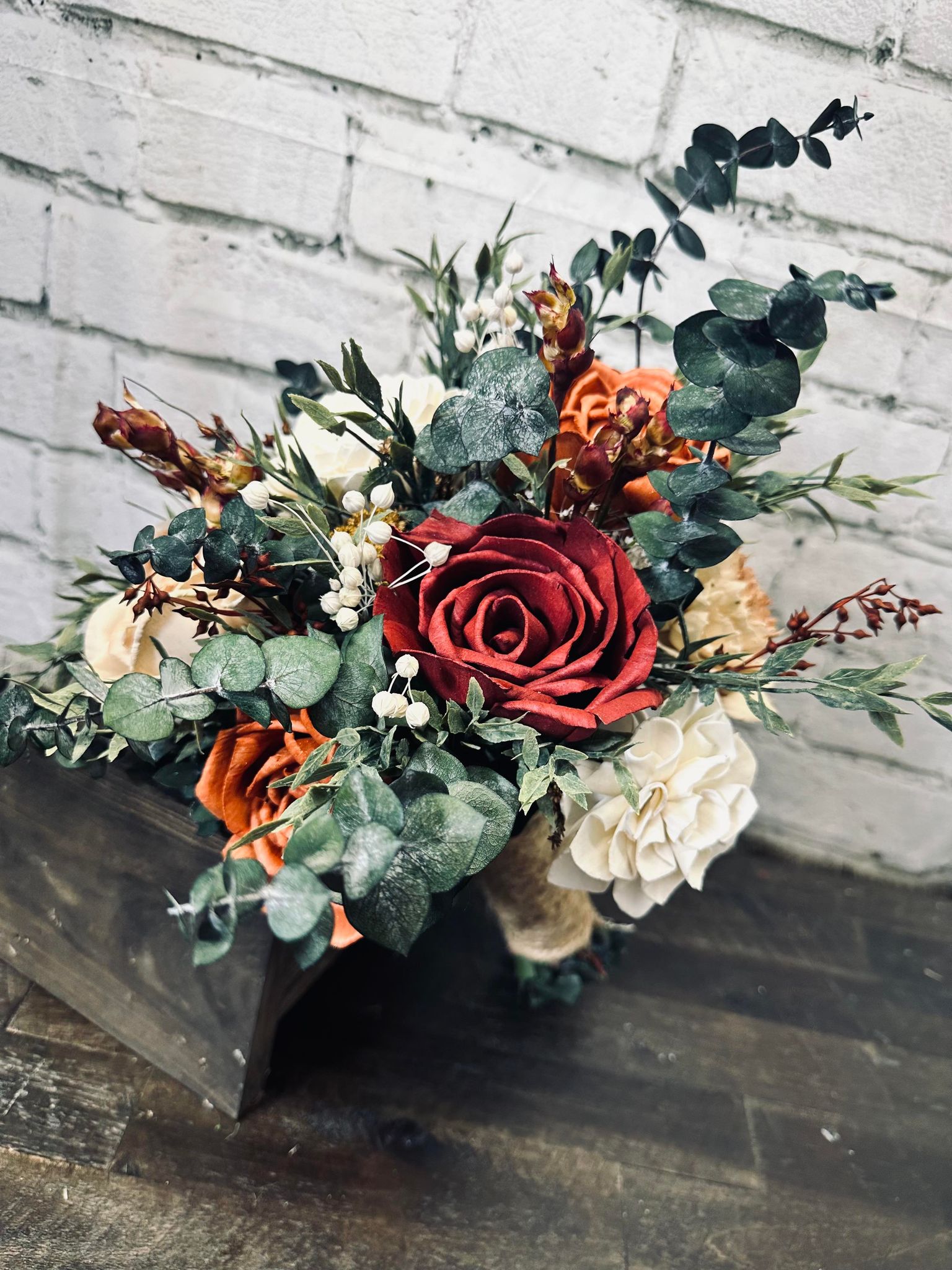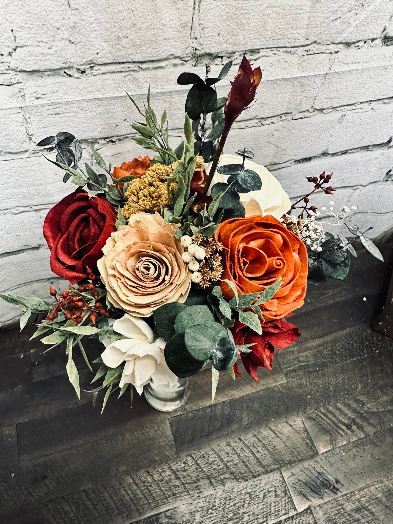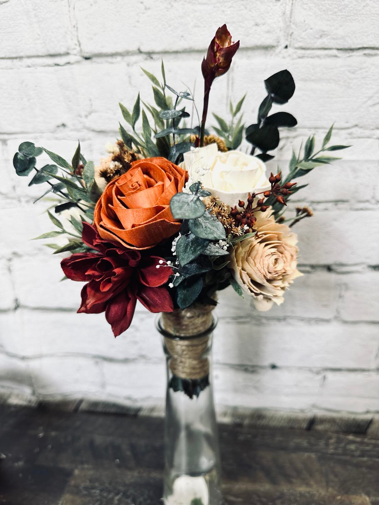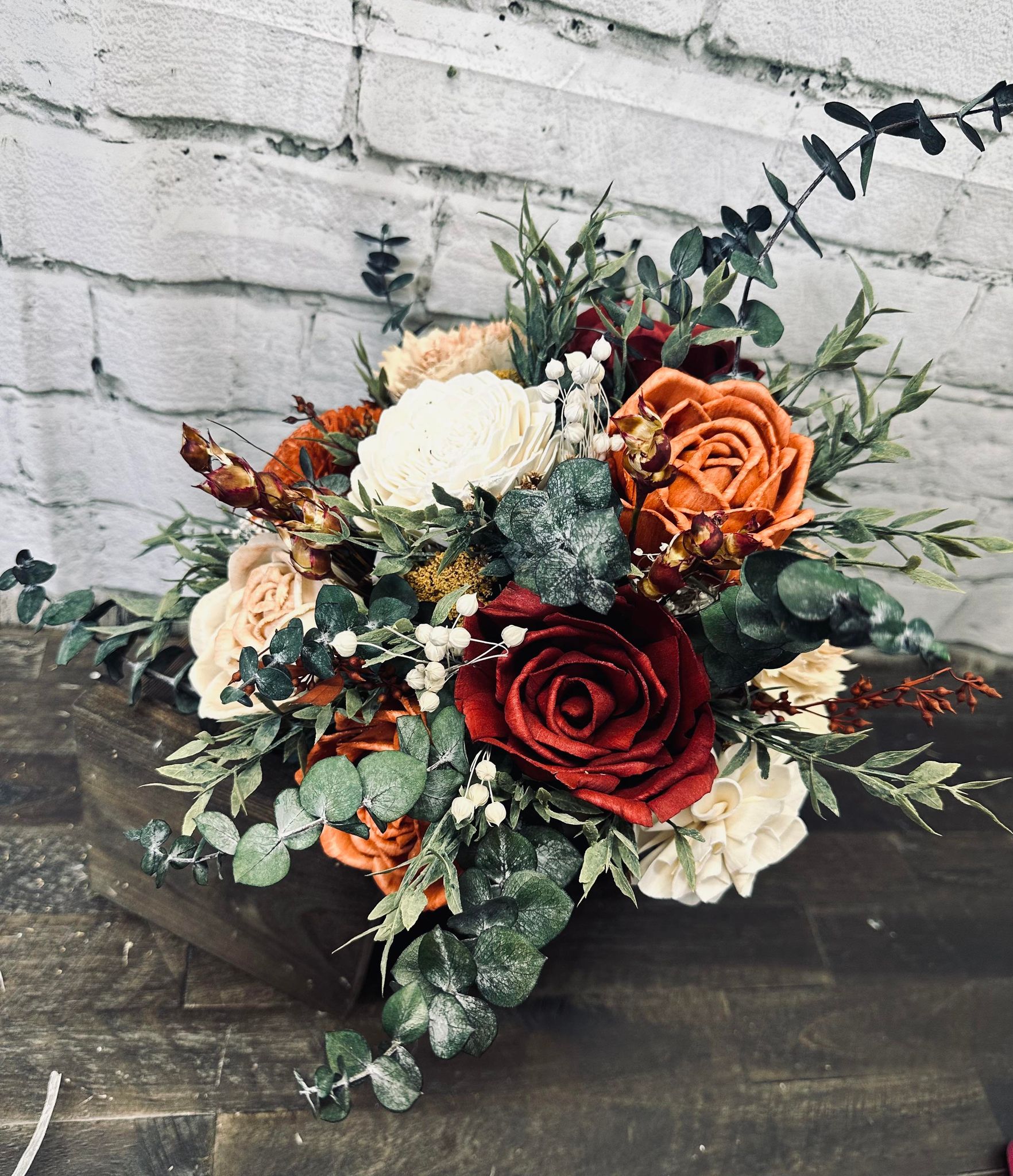 Enchanted Forest Collection:: All things magical come from the Enchanted Forest. Including this variety of hand dyed wood flowers, finished with real preserved spiral eucalyptus, natural dried filler, and greenery. With our Enchanted Forest Collection, you will be a queen fit for your king!