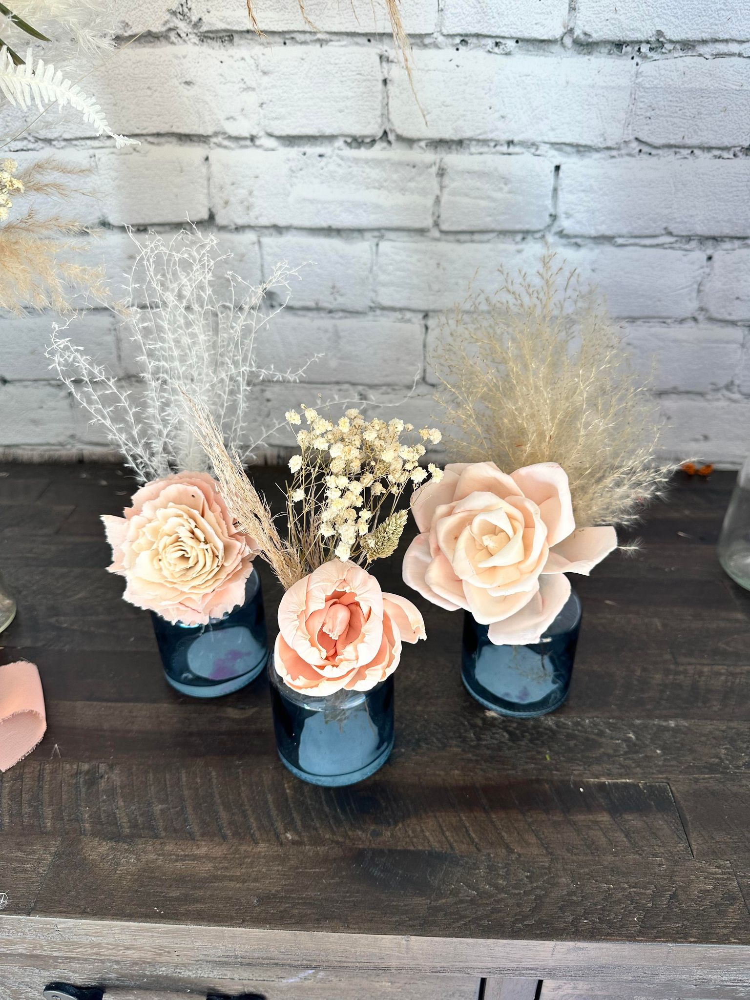 Flower Origin:: We use handmade wooden flowers from Thailand! These flowers are not fresh flowers. The texture is similar to a really thin version of balsa wood. Because they are handmade, and made from natural materials, no two are exactly alike. Brown veining, sometimes small holes from a “knot” in the wood are on some of the flowers due to being made from the bark of a tree. A variety of lines may show from the bark on skinless flowers. These are perfectly imperfect.