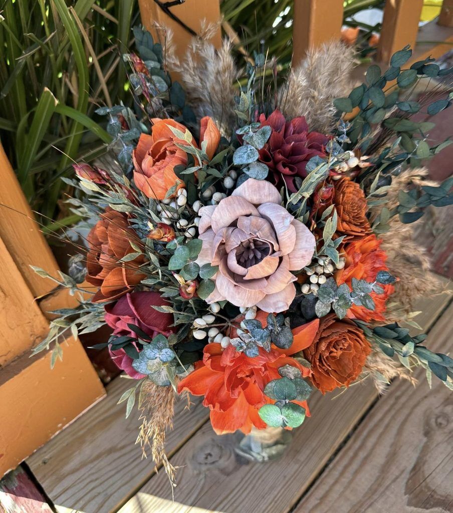 Girl's Night Collection:: Hot hot hot!!! These colors are exactly what your wedding day look needs! Our hand dyed wood flowers are finished with real preserved pampas, spiral eucalyptus, greenery, and natural dried fillers. Dance your feet off with our "Girl's Night Collection!