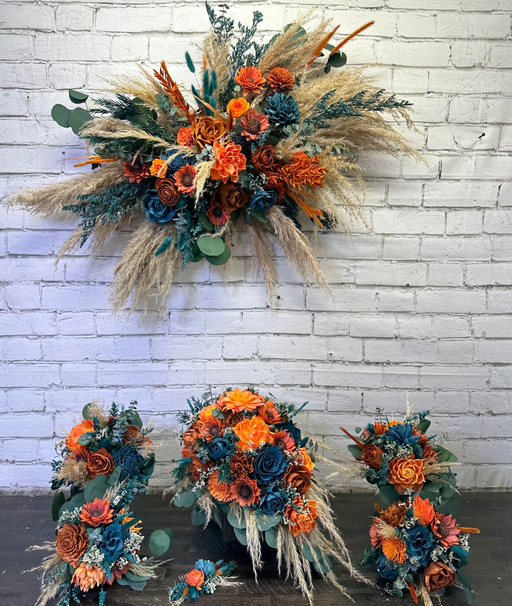 We strive to create every collection as close to the original as possible. These items are hand-crafted. Slight differences from the main photos will occur, as you are not purchasing the photographed items. Your collection is being made to order.. Flower design and fillers may vary due to availability of products.