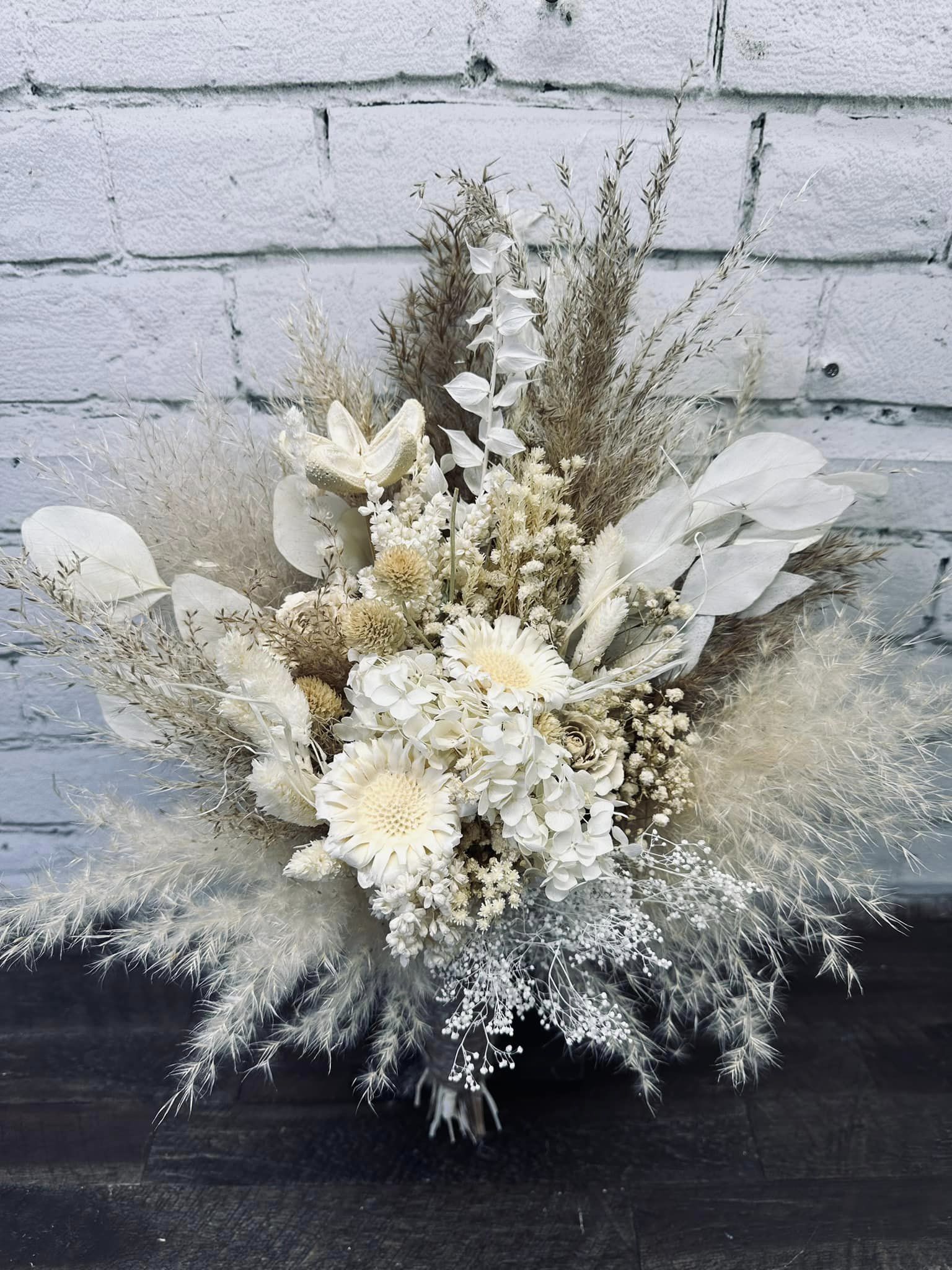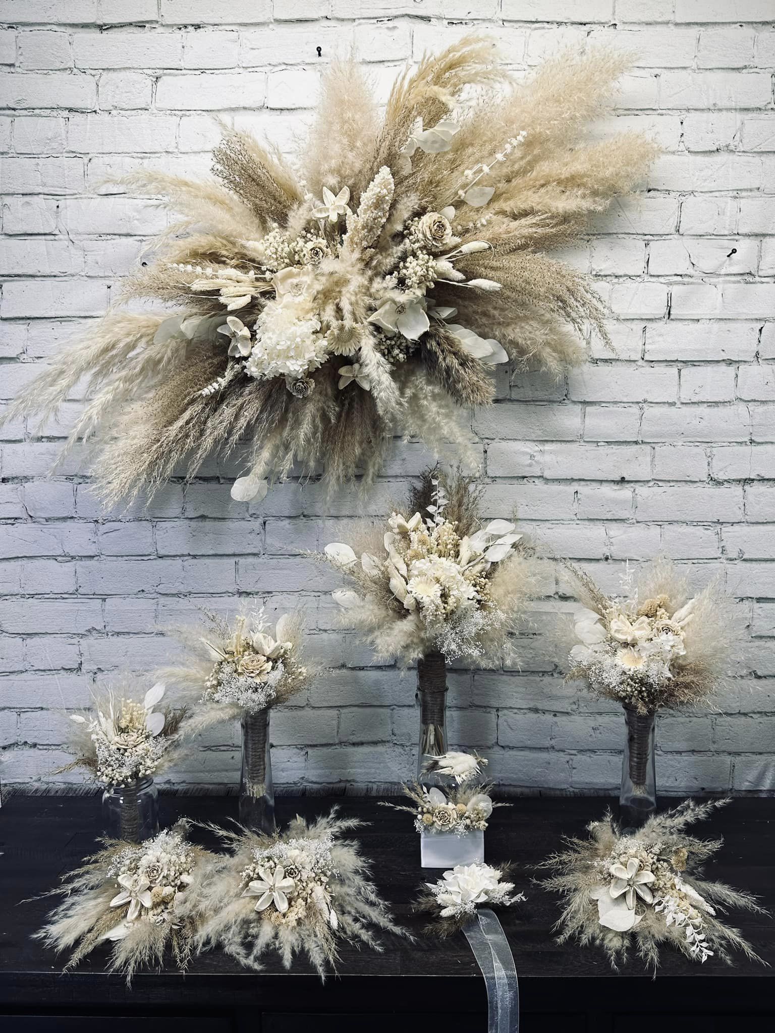 Isabelle Collection:: Simply put, this is classical boho. A collection of wood flowers & sunflowers, finished with real preserved pampas, babies breath, hydrangeas, bunny tails, ruscus, and natural dried fillers. For an elegant look, you definitely need to go with our Isabelle Collection!
