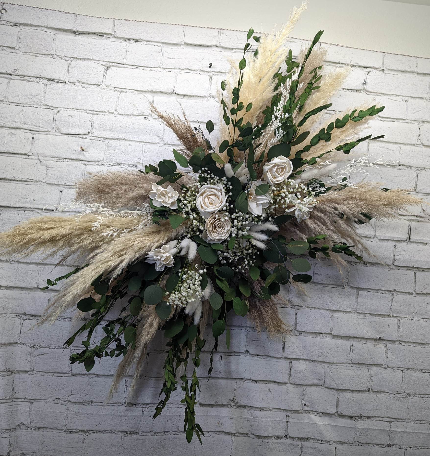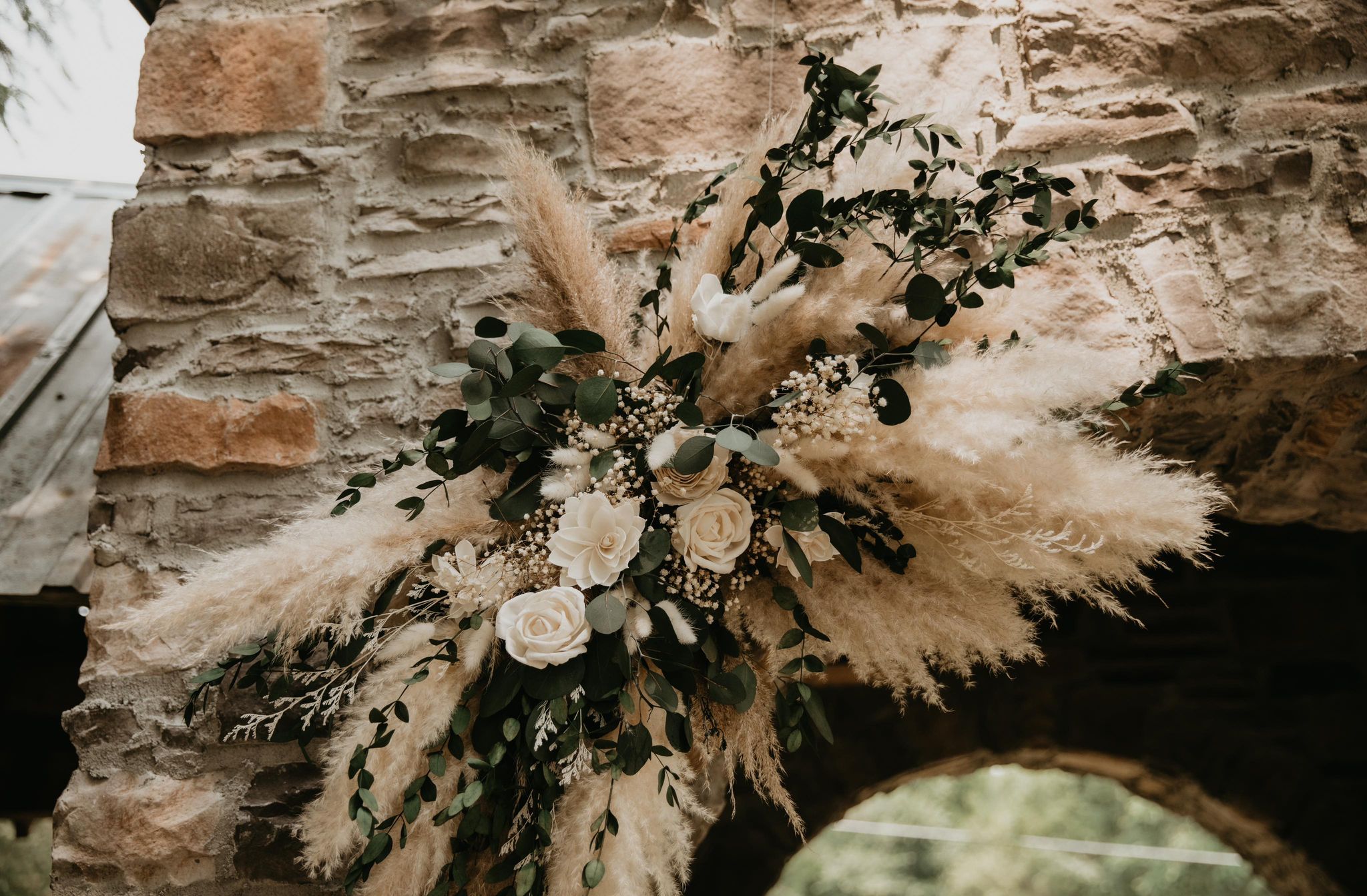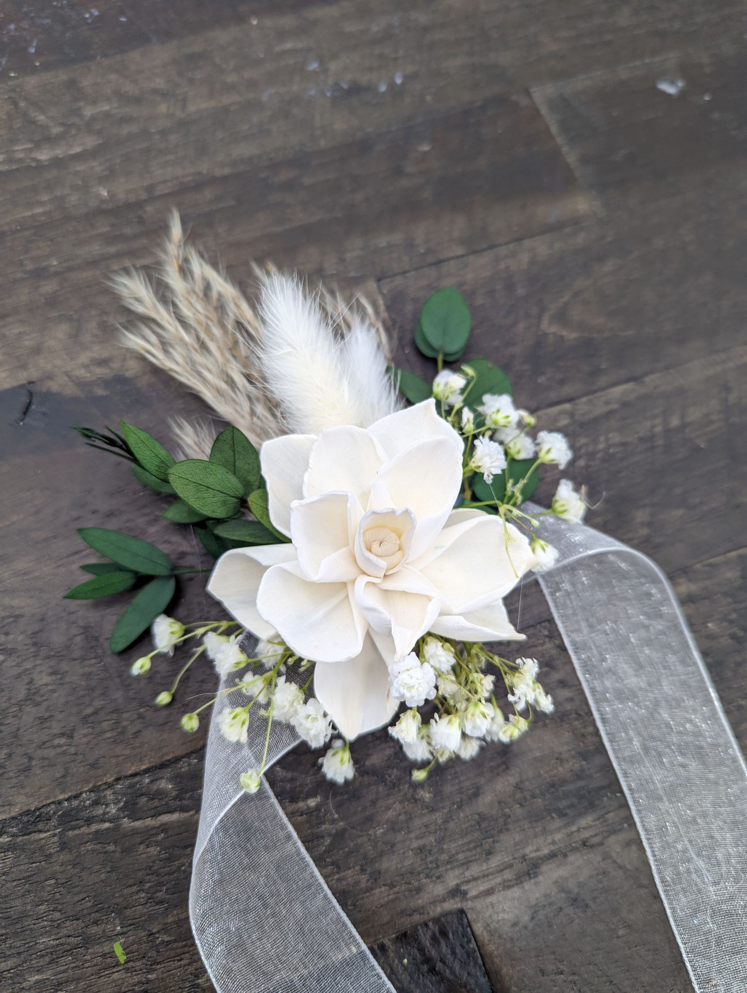 Ivory Clouds Collection:: Soar through the skies on your wedding day with our new Ivory Clouds collection! A few beautiful wood flowers surrounded by real preserved pampas, babies breath, and a few types of eucalyptus. This set is sure to leave you, and your guests, on cloud 9!