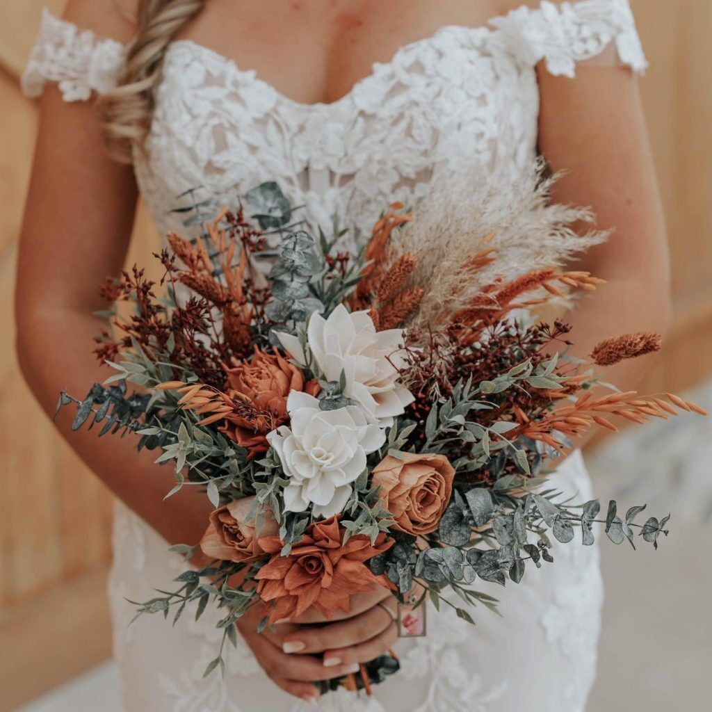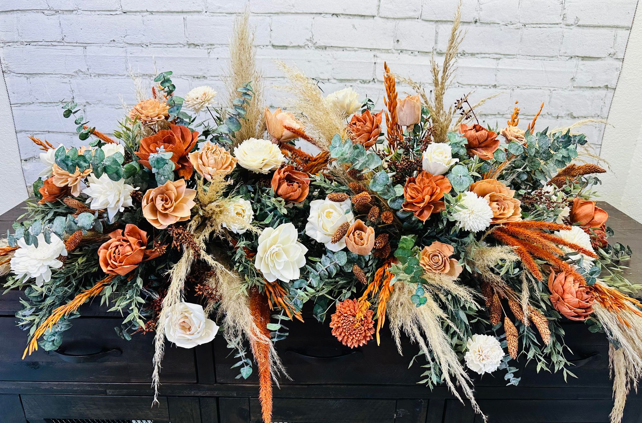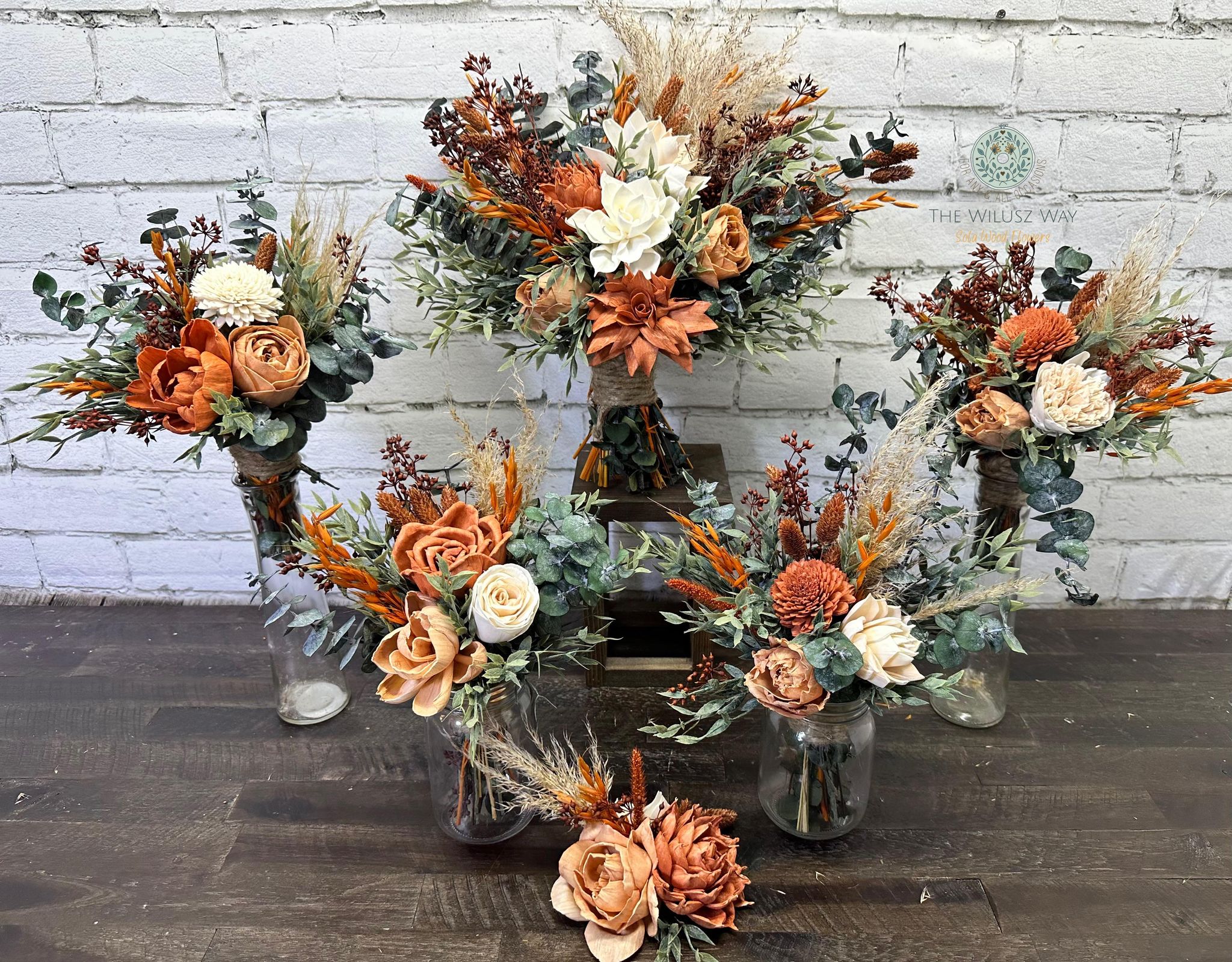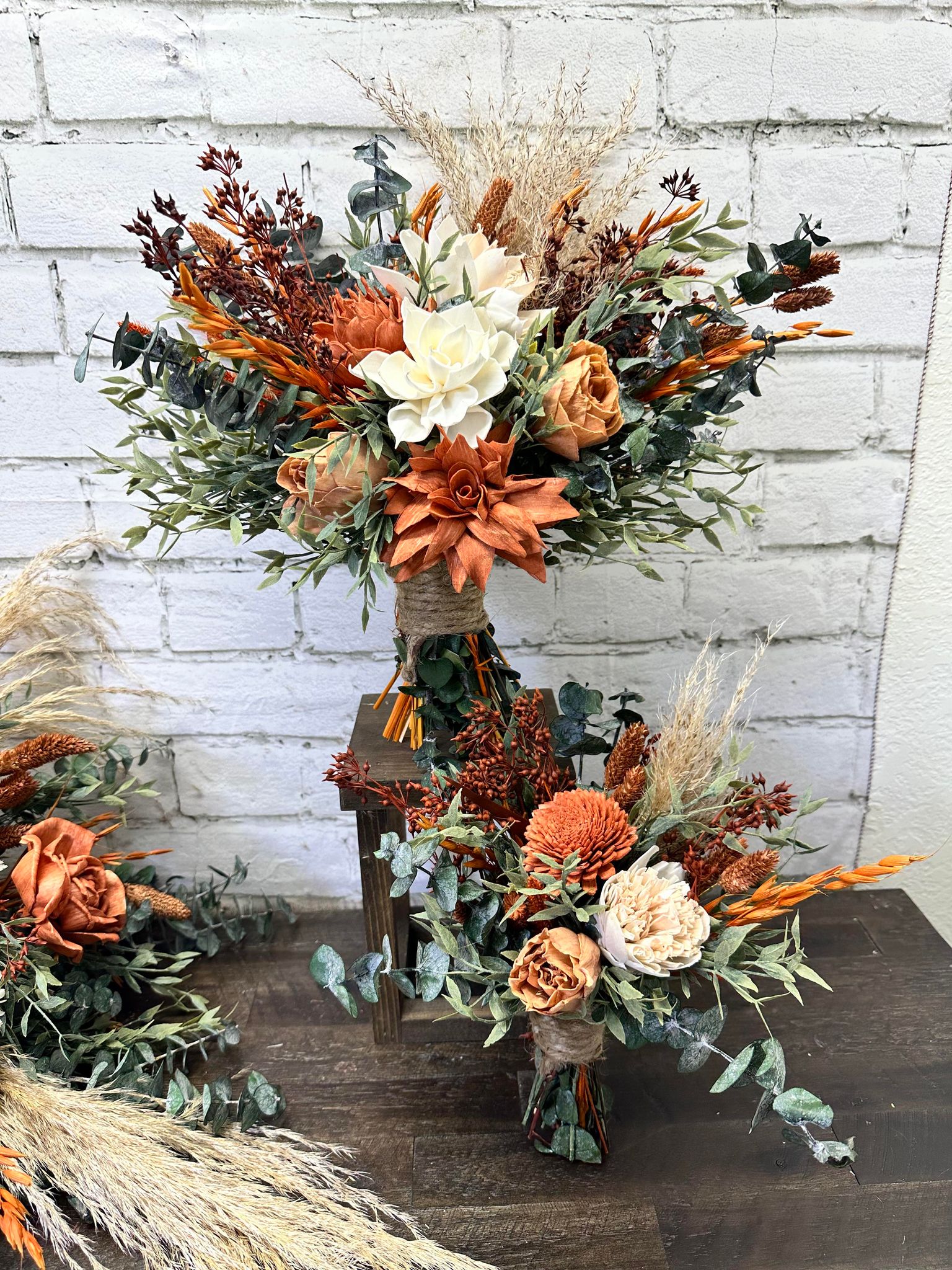 Looking For Fall Collection:: Look no further, this set is ready for you to fall in love! With a fun collection of wood flowers, this set is finished with real preserved pampas, spiral eucalyptus, bunny tails, wheat, and other greenery. Our Looking For Fall Collection is the perfect autumn set to add to your list!