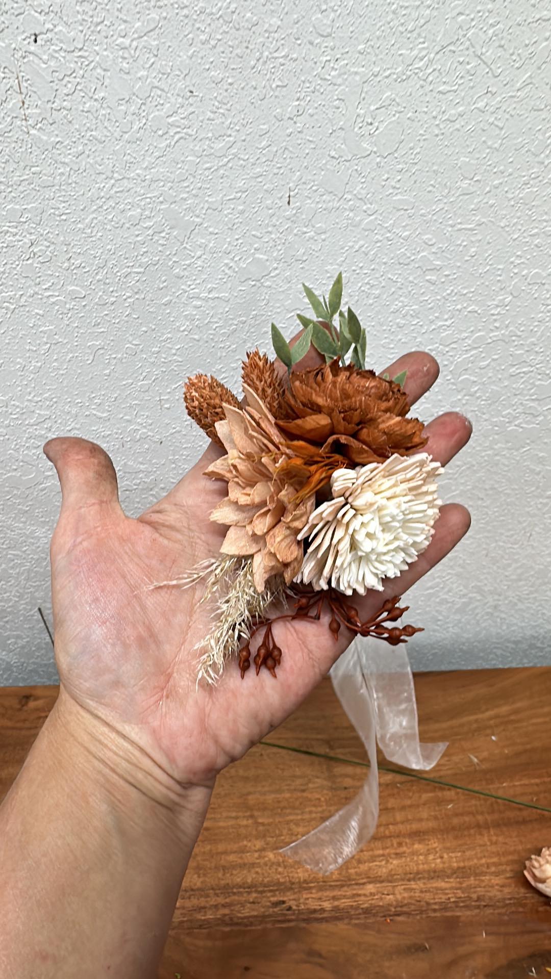 Flower Origin:: We use handmade wooden flowers from Thailand! These flowers are not fresh flowers. The texture is similar to a really thin version of balsa wood. Because they are handmade, and made from natural materials, no two are exactly alike. Brown veining, sometimes small holes from a “knot” in the wood are on some of the flowers due to being made from the bark of a tree. A variety of lines may show from the bark on skinless flowers. These are perfectly imperfect.