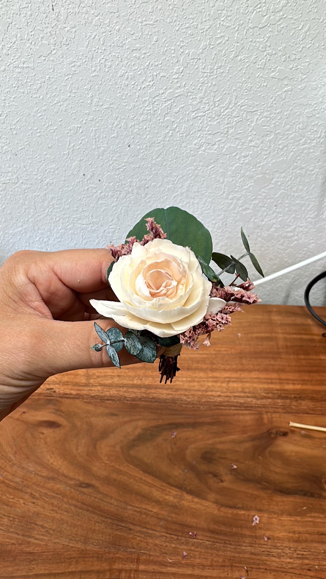 Flower Origin:: We use handmade wooden flowers from Thailand! These flowers are not fresh flowers. The texture is similar to a really thin version of balsa wood. Because they are handmade, and made from natural materials, no two are exactly alike. Brown veining, sometimes small holes from a “knot” in the wood are on some of the flowers due to being made from the bark of a tree. A variety of lines may show from the bark on skinless flowers. These are perfectly imperfect.