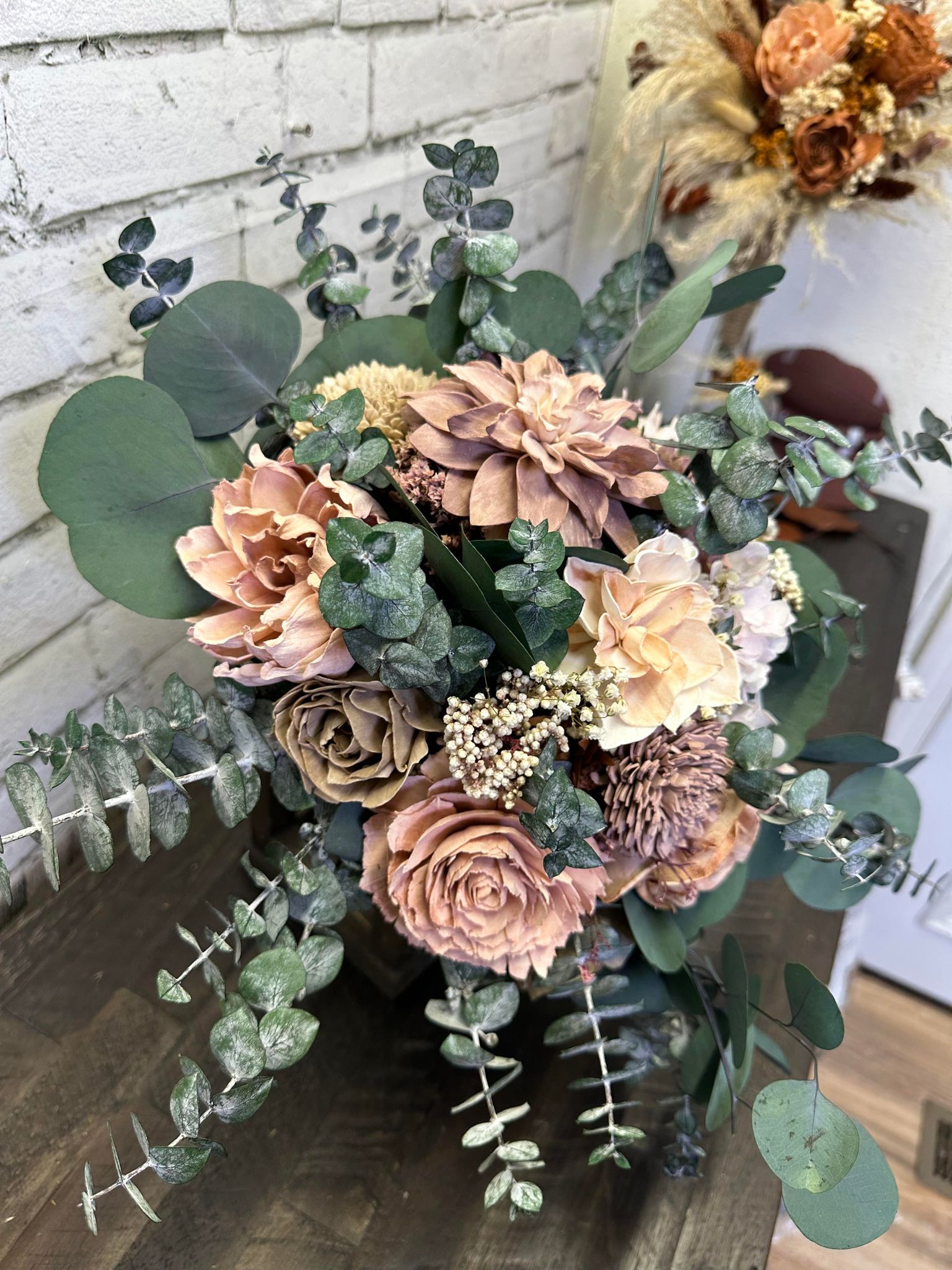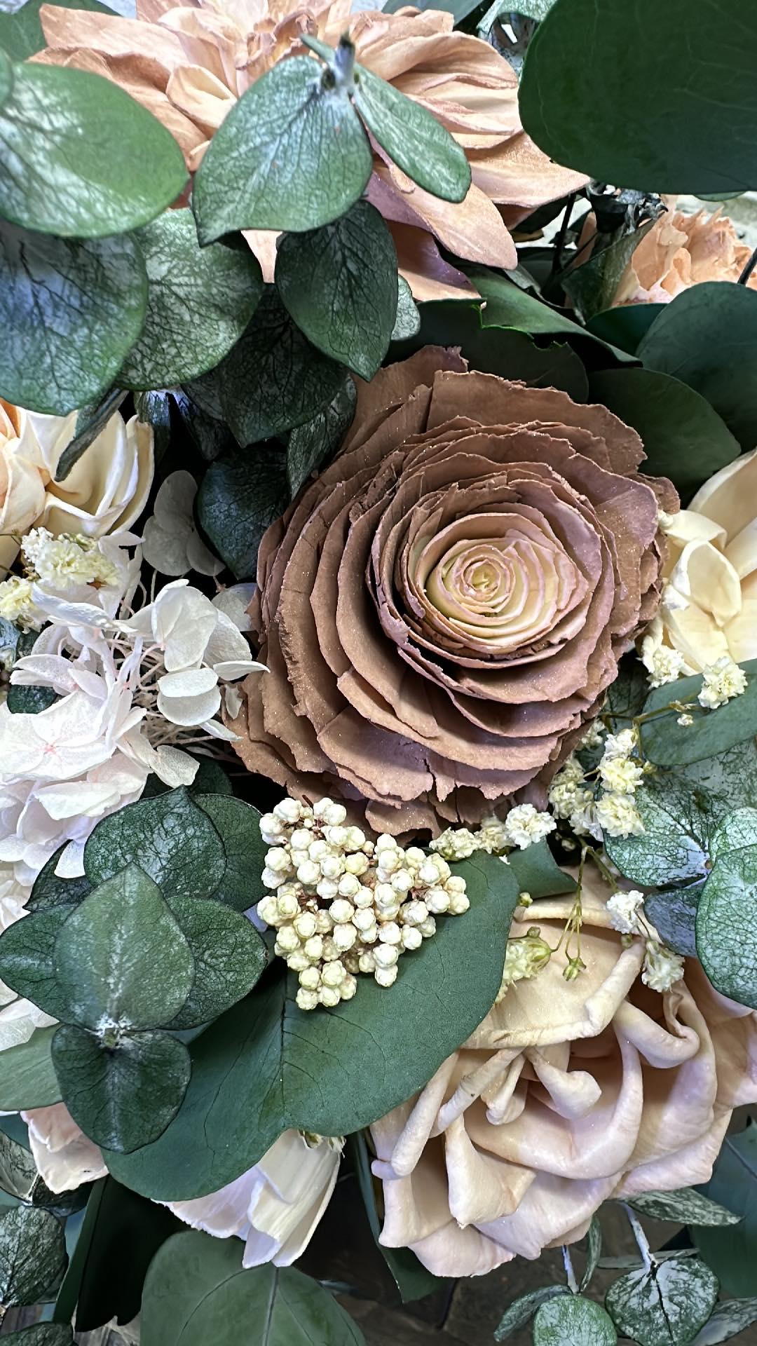 Care & Storage:: Once you receive your flowers, we recommend you take them out of the boxes & paper, setting them upright in a dry-climate controlled environment where the temperature is steady & does not vary. Humidity levels should not be higher than 50%. Do not keep your flowers in any basements, attics, garages or bathrooms where moisture may fluctuate. Once the flowers leave us & arrive to you, their care is no longer the responsibility of The Wilusz Way. If your collection has natural dried flowers, please keep in mind they are fragile and should be handled gently and stored with care.