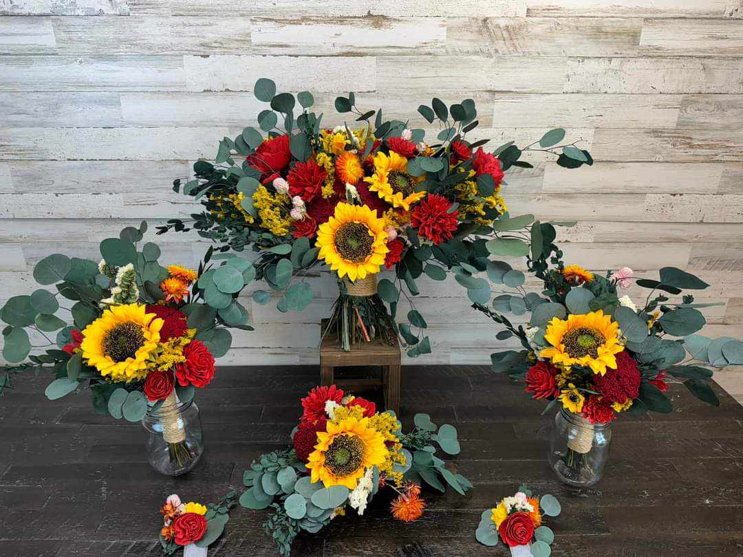 We strive to create every collection as close to the original as possible. These items are hand-crafted. Slight differences from the main photos will occur, as you are not purchasing the photographed items. Your collection is being made to order.. Flower design and fillers may vary due to availability of products.
