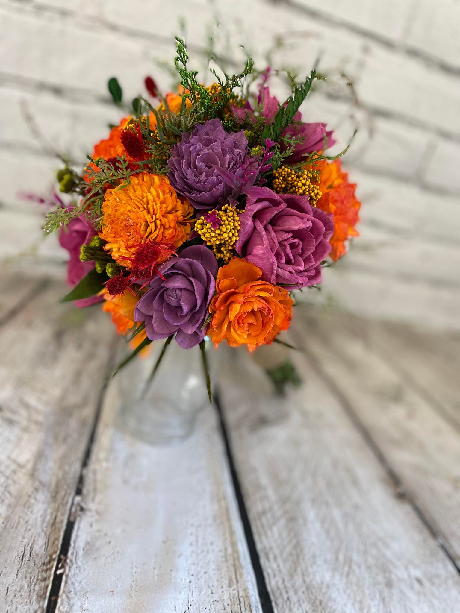 Care & Storage:: Once you receive your flowers, we recommend you take them out of the boxes & paper, setting them upright in a dry-climate controlled environment where the temperature is steady & does not vary. Humidity levels should not be higher than 50%. Do not keep your flowers in any basements, attics, garages or bathrooms where moisture may fluctuate. Once the flowers leave us & arrive to you, their care is no longer the responsibility of The Wilusz Way. If your collection has natural dried flowers, please keep in mind they are fragile and should be handled gently and stored with care.
