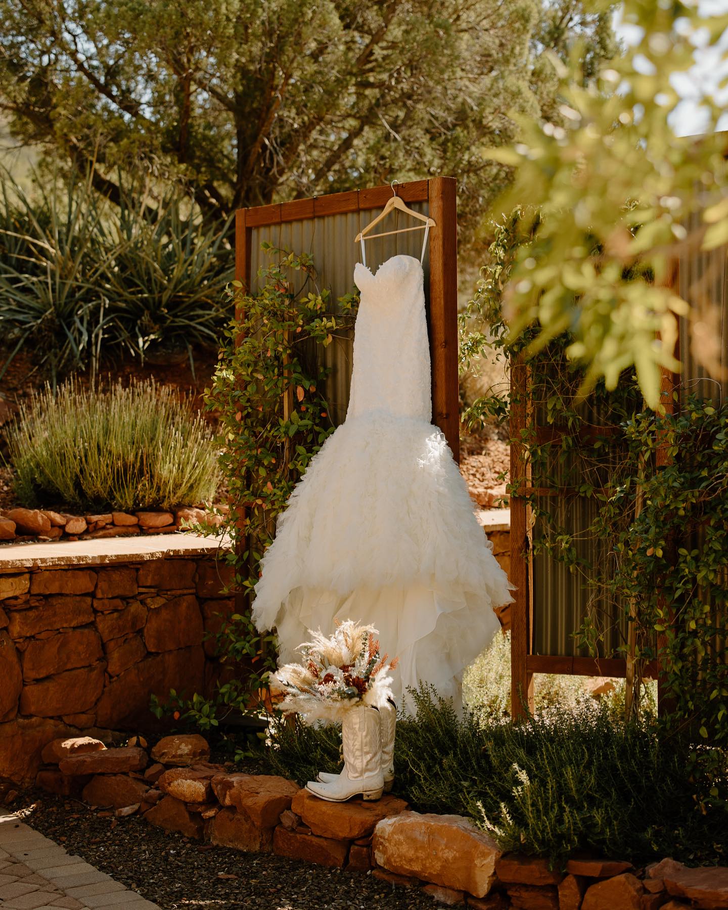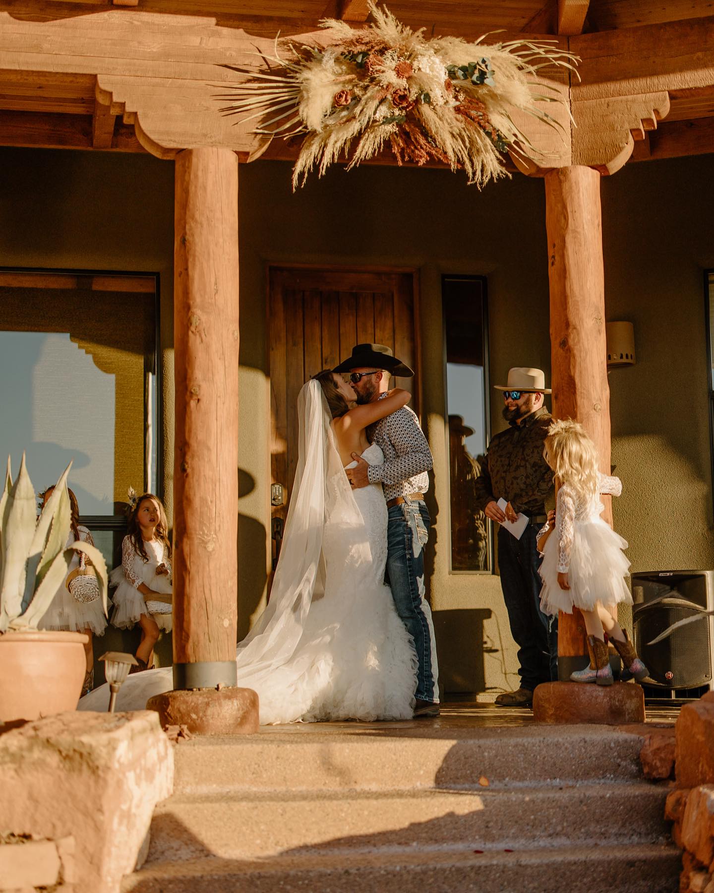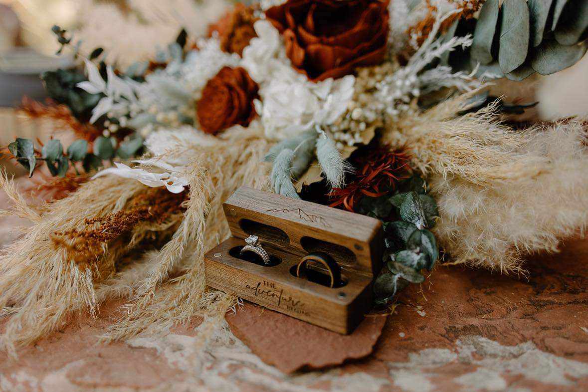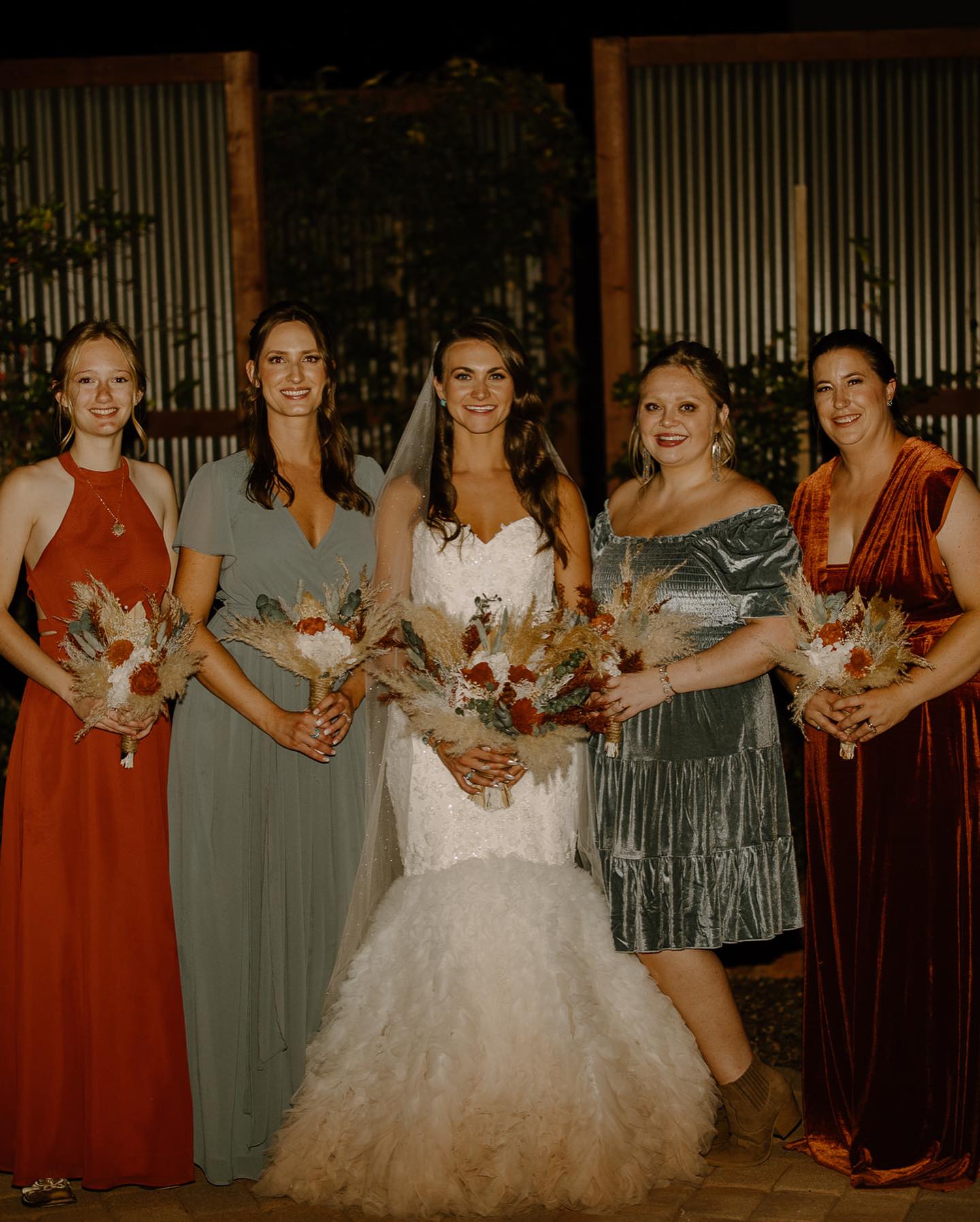 Rusty Blues Collection:: Rustic boho takes on a lil shine! Our rust dye has a little shimmer to brighten your day! This set of hand dyed wood flowers are finished with real preserved spiral & silver dollar eucalyptus, sun palms, hydrangeas, bunny tails, babies breath, ruscus, and natural dried fillers. Our "Rusty Blues" Collection will bring your whole look together, and warm the hearts of everyone in attendance.