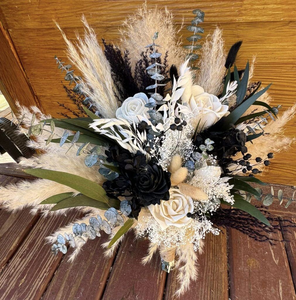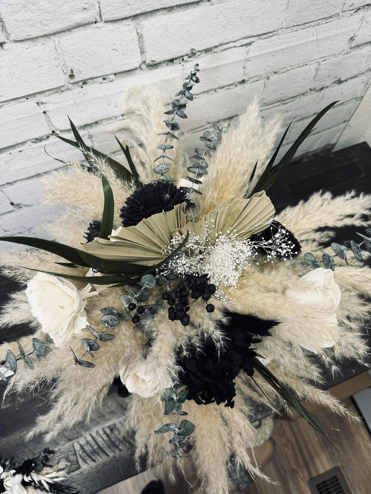 Secret Oasis Collection:: Shhh! We will let you in on our newest secret! Boho is IT! This stunning collections features a terracotta and orange rust colorway. Real preserved pampas, spiral eucalyptus, babies breath and some ivory and white bring this set to LIFE! Our Secret Oasis will take you away on your special day!