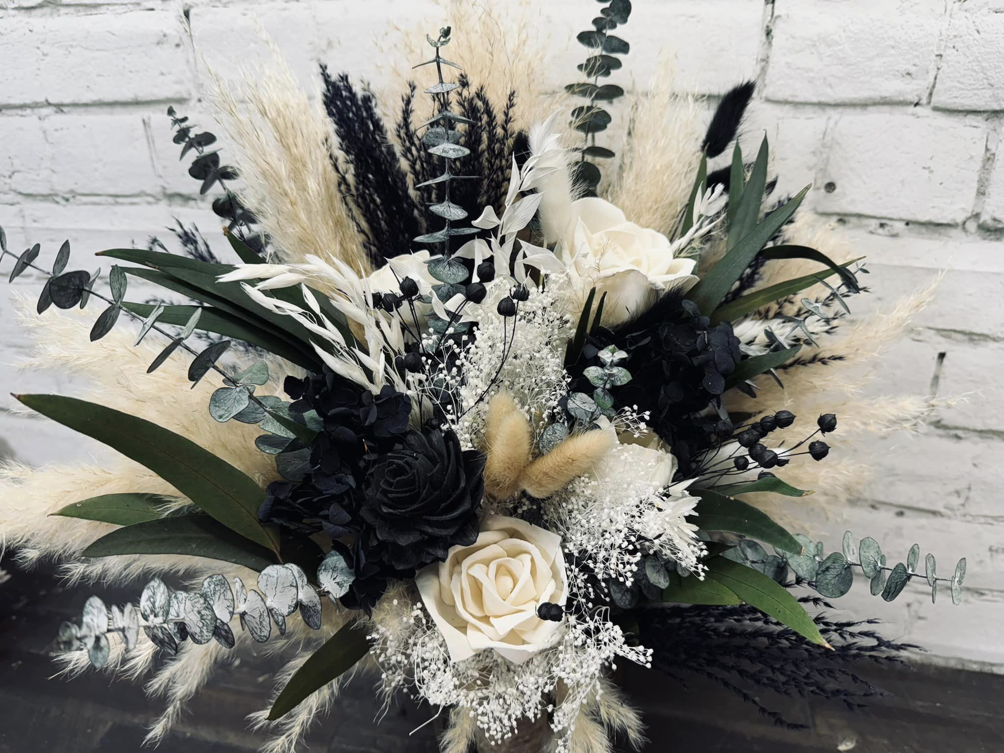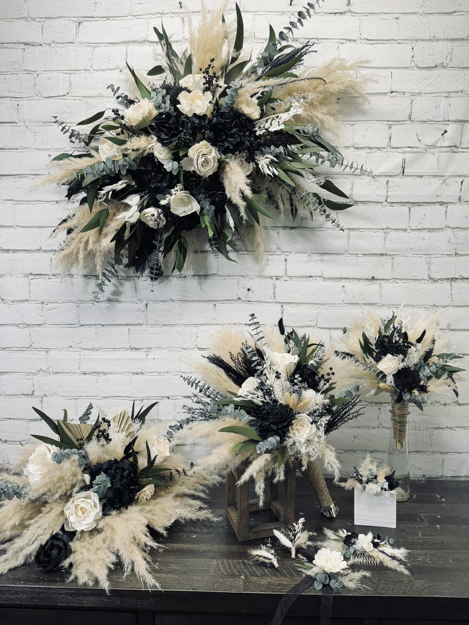 We strive to create every collection as close to the original as possible. These items are hand-crafted. Slight differences from the main photos will occur, as you are not purchasing the photographed items. Your collection is being made to order.. Flower design and fillers may vary due to availability of products.