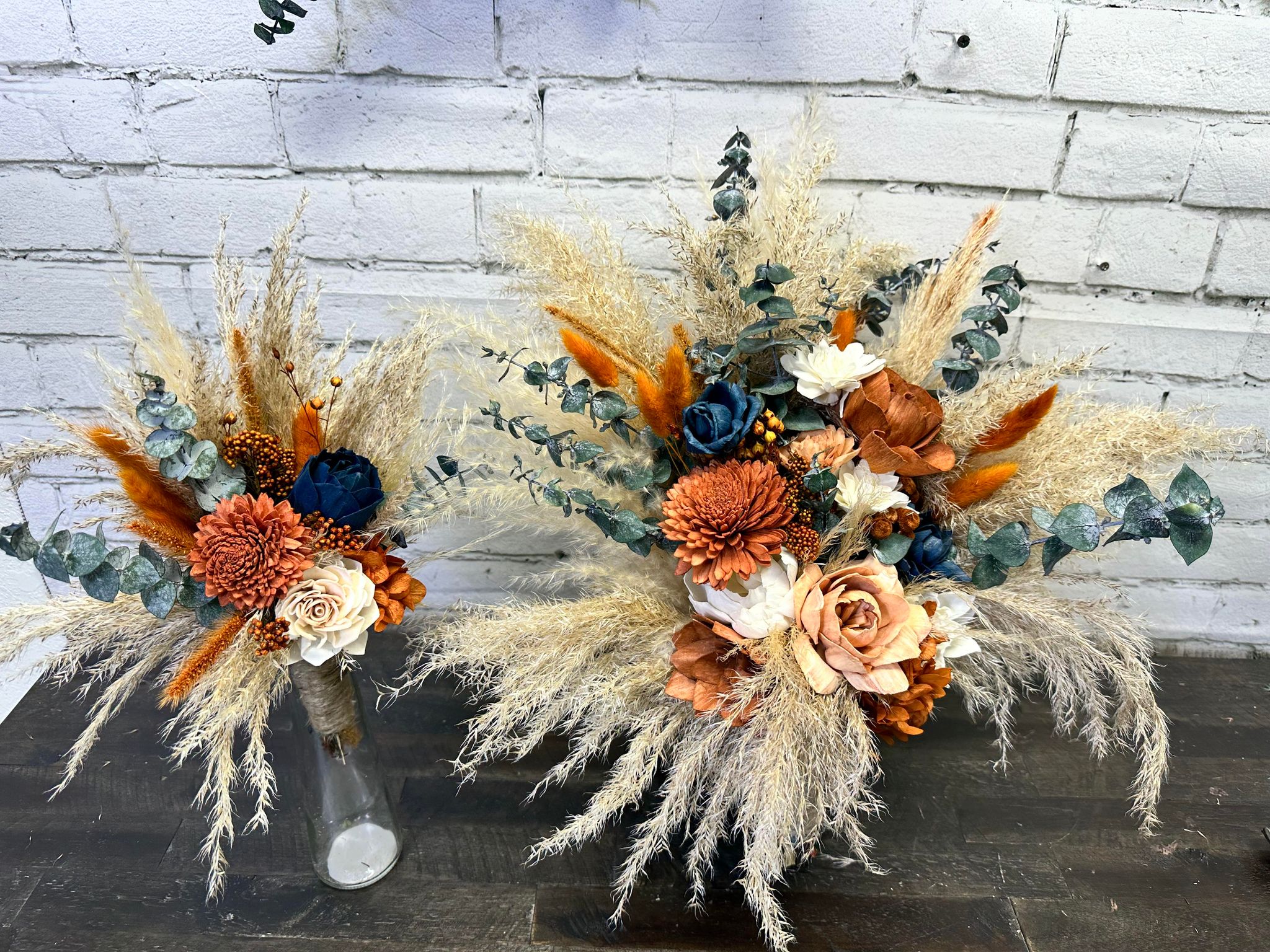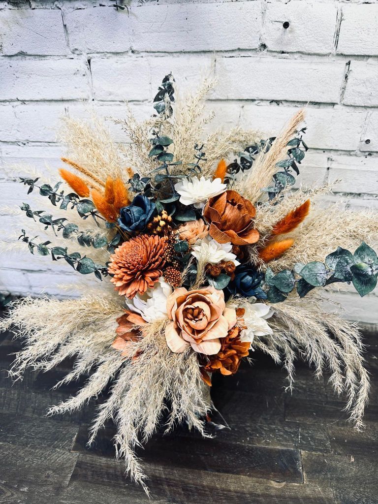 September Harvest Collection:: The time is now, so here it is! The big fluffy rustic boho set you have been looking for! With warm colored wood flowers, this set is filled with real preserved pampas, spiral eucalyptus, hydrangeas, bunny tails, and natural dried fillers. You can't go wrong, no matter what time of year, with our September Harvest Collection!
