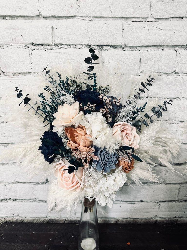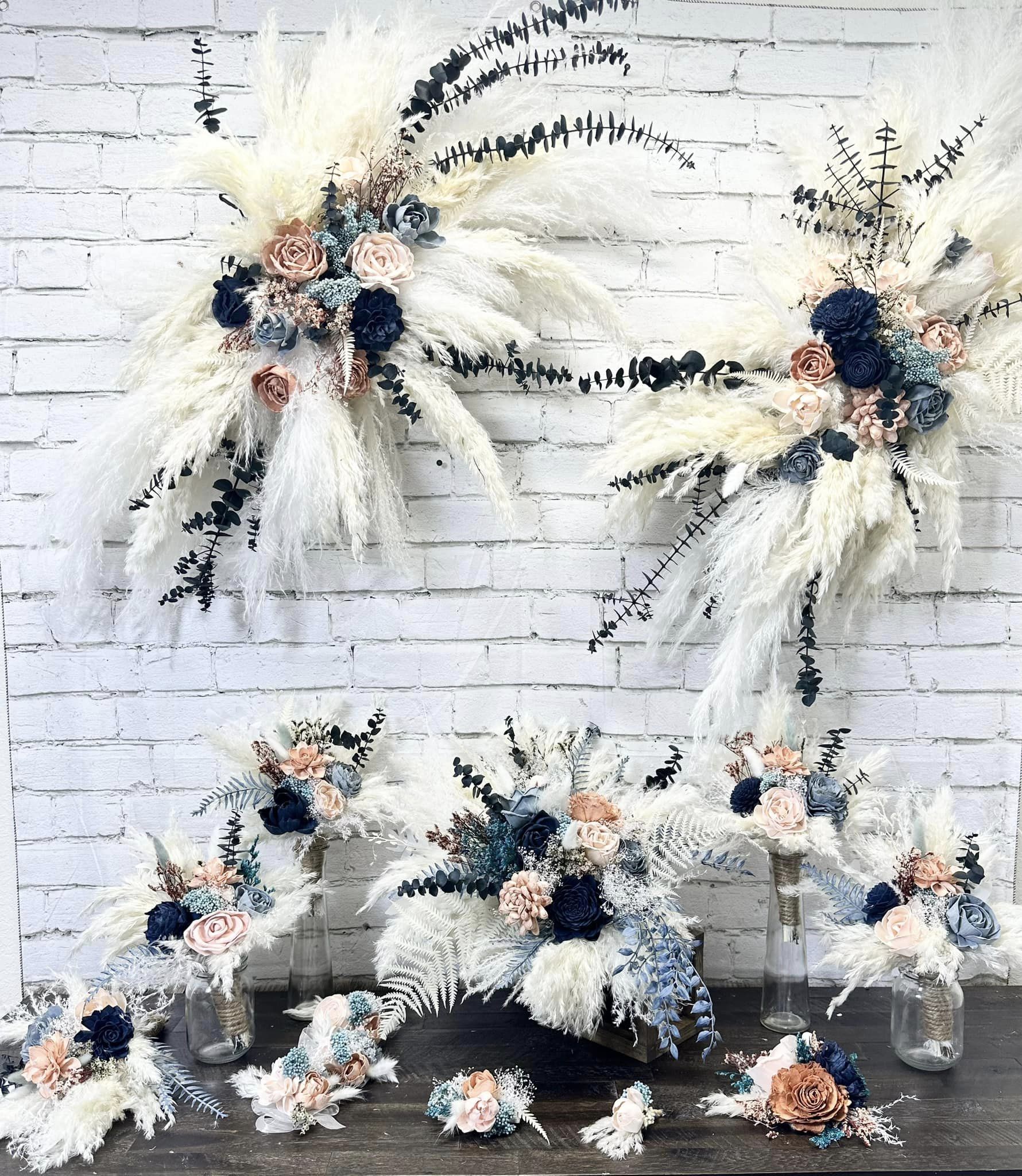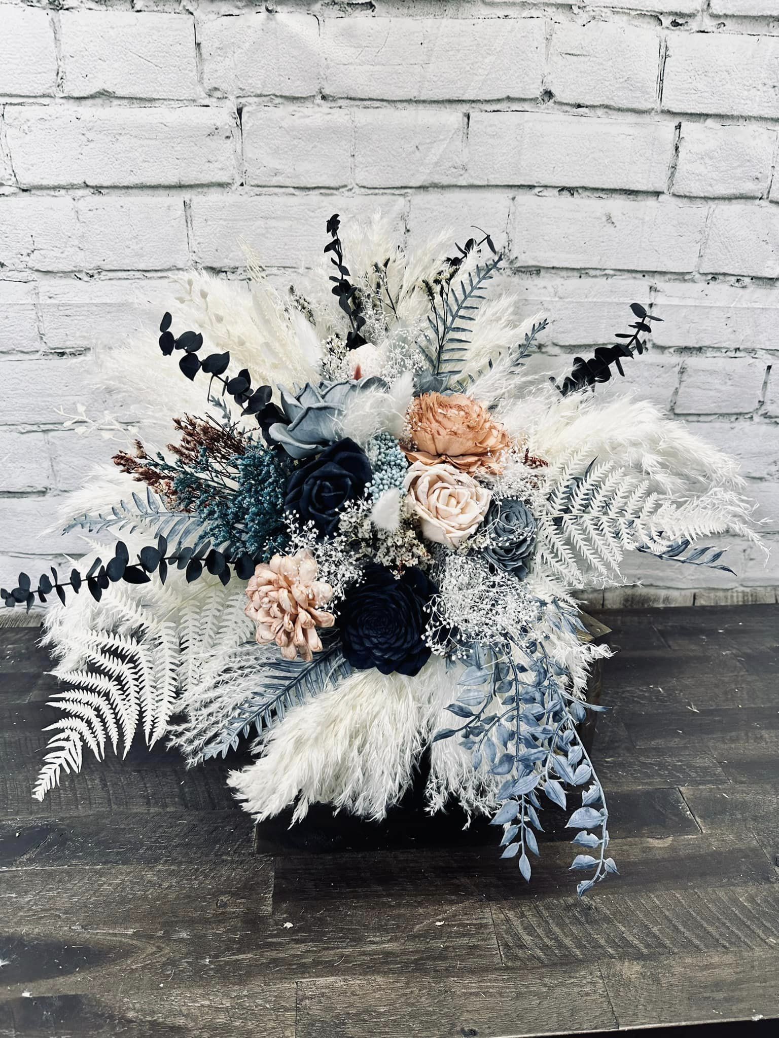 Summer Blossom Collection:: Whether its April showers, May flowers, or somewhere when its snowing; this soft color theme is perfect for any time of year. wood flowers surrounded by real preserved white pampas, spiral eucalyptus, hydrangeas, and other fillers. Take the flower harvest with you on your wedding day with our Summer Blossom Collection!